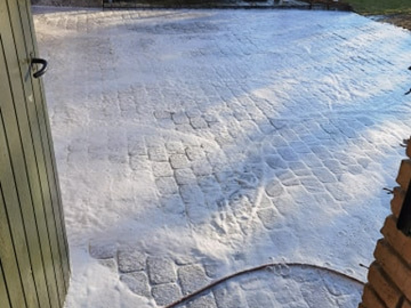 Har fået fliserens, nanobehandling og pålagt sand på fliserne på 2 teresser og gangsti i indkørslen.