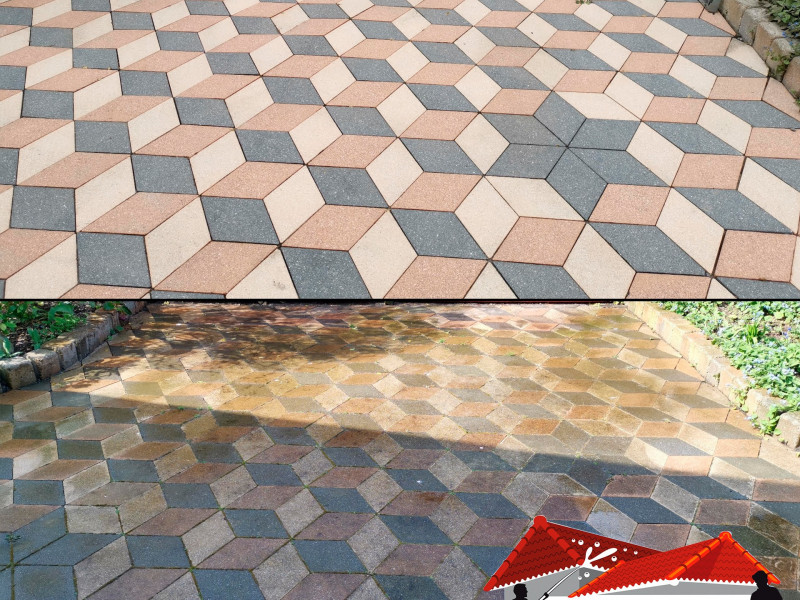 Fantastisk blot resultat efter en omgang fliserens over det hele - terrasse, flisegangsarealer og parkeringsområdet samt en håndværker der rydder rigtig fint op efter sig.