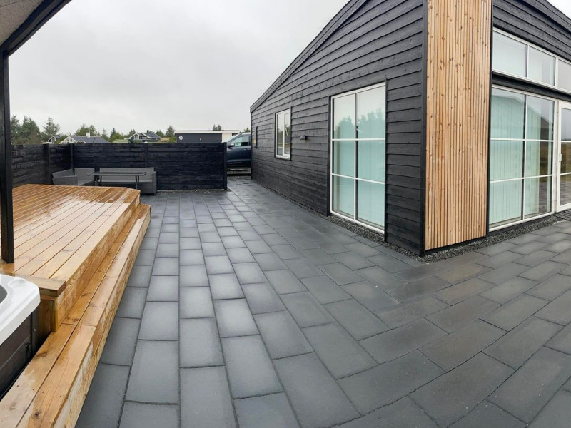 Herefter store fliser rundt om hele ejendommen, samt diverse terrasser og dræn.