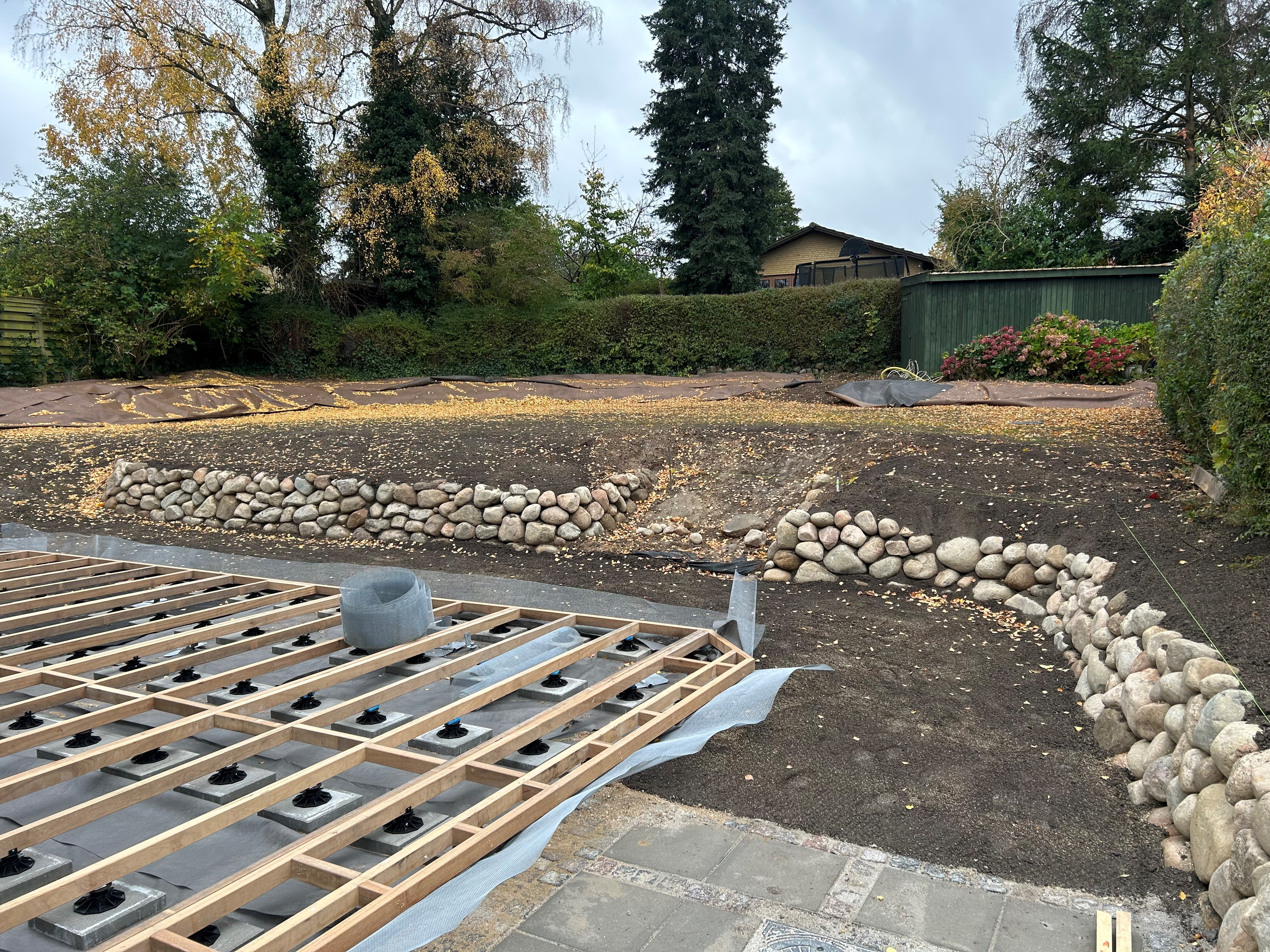 Haven er stadig meget nyanlagt, så billederne er desværre ikke være særligt retvisende for det færdige resultat, men vi er ekstremt glade for at vi har fået anlagt en smuk have som vi ved er udført efter god skik.