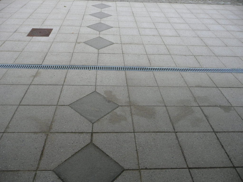 Oprydning af eksisterende anlæg, nye fliser og græsarmering, ny plæne