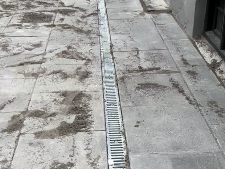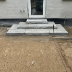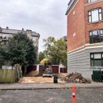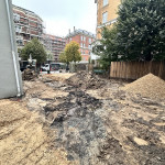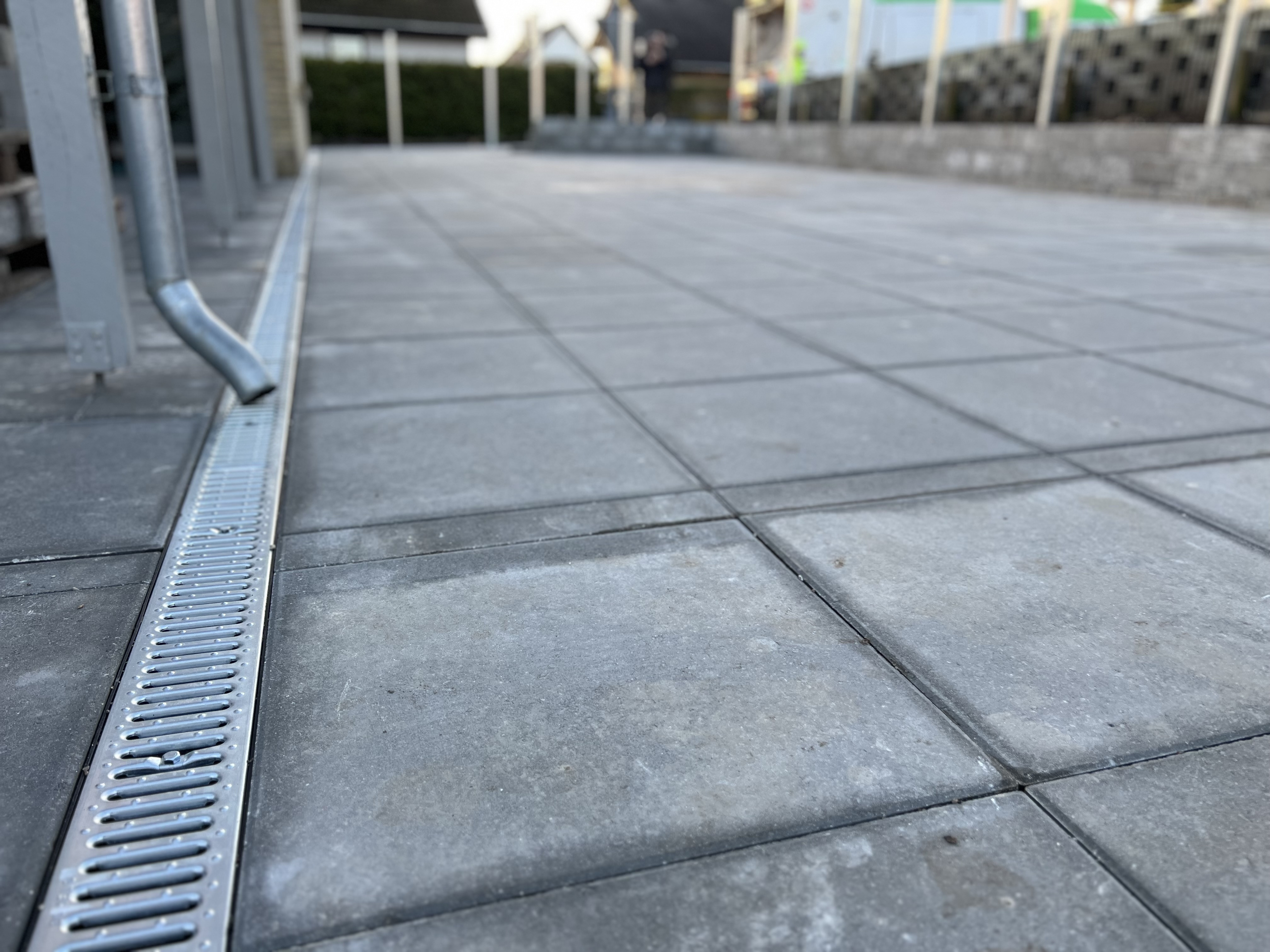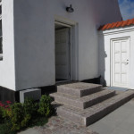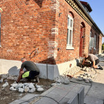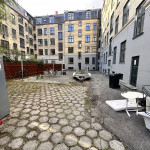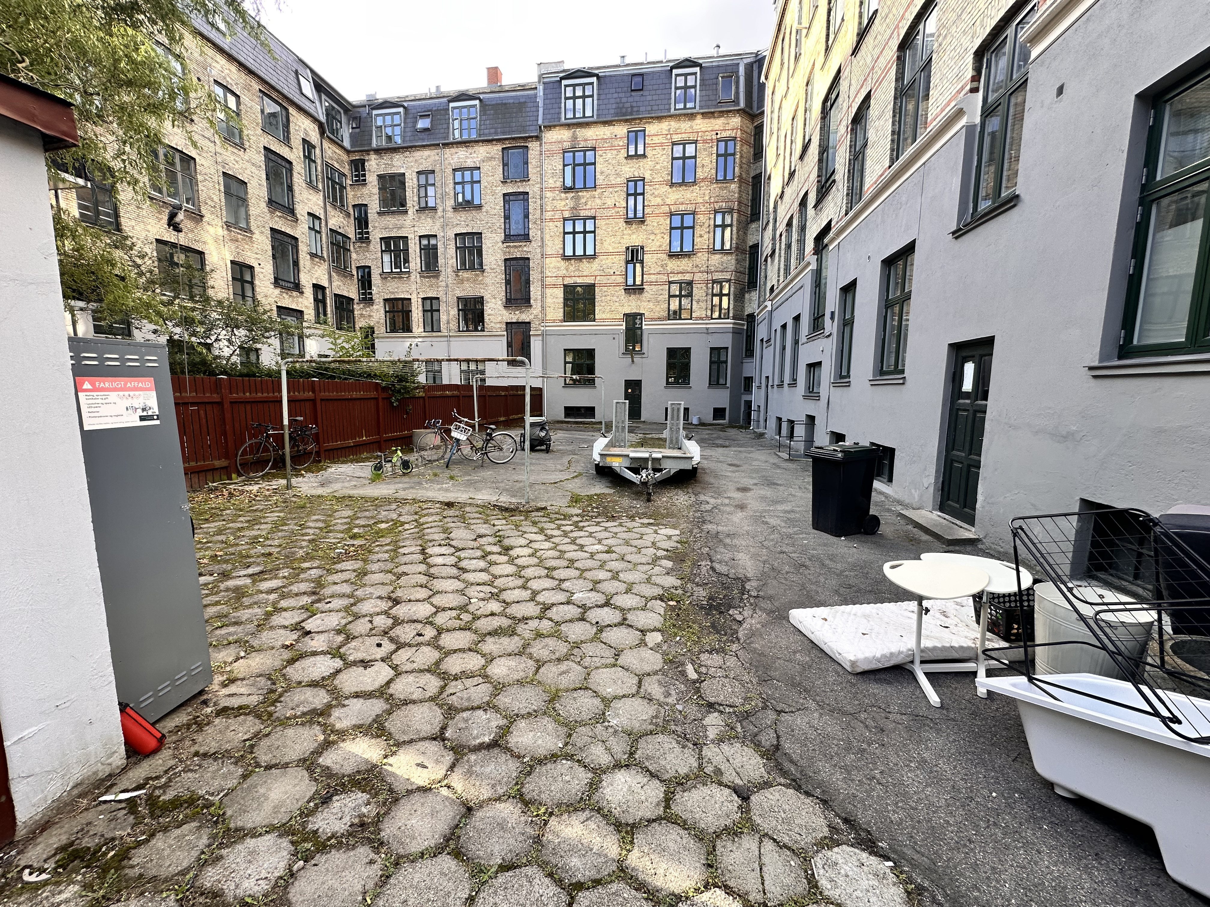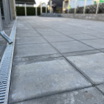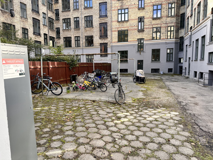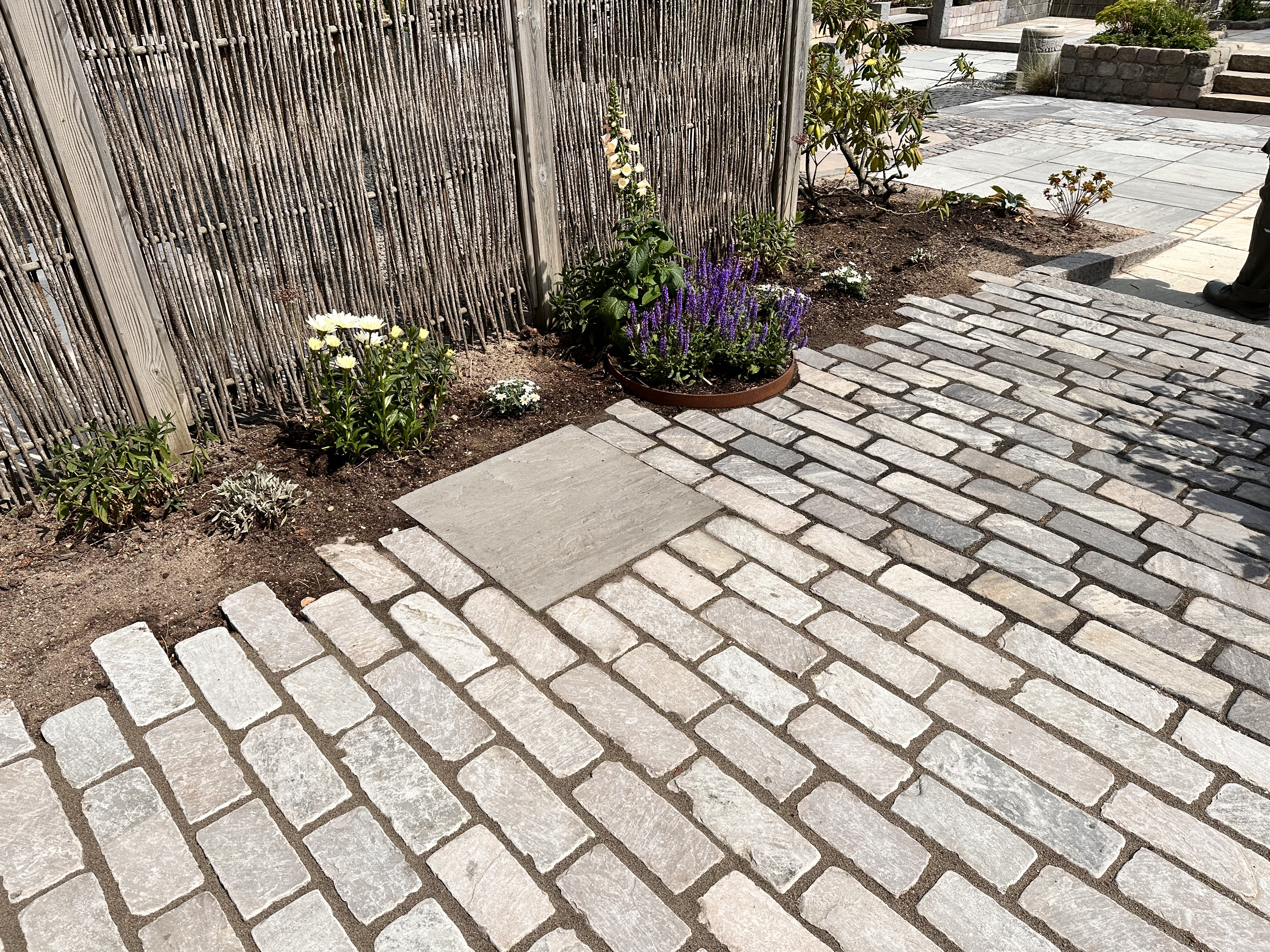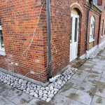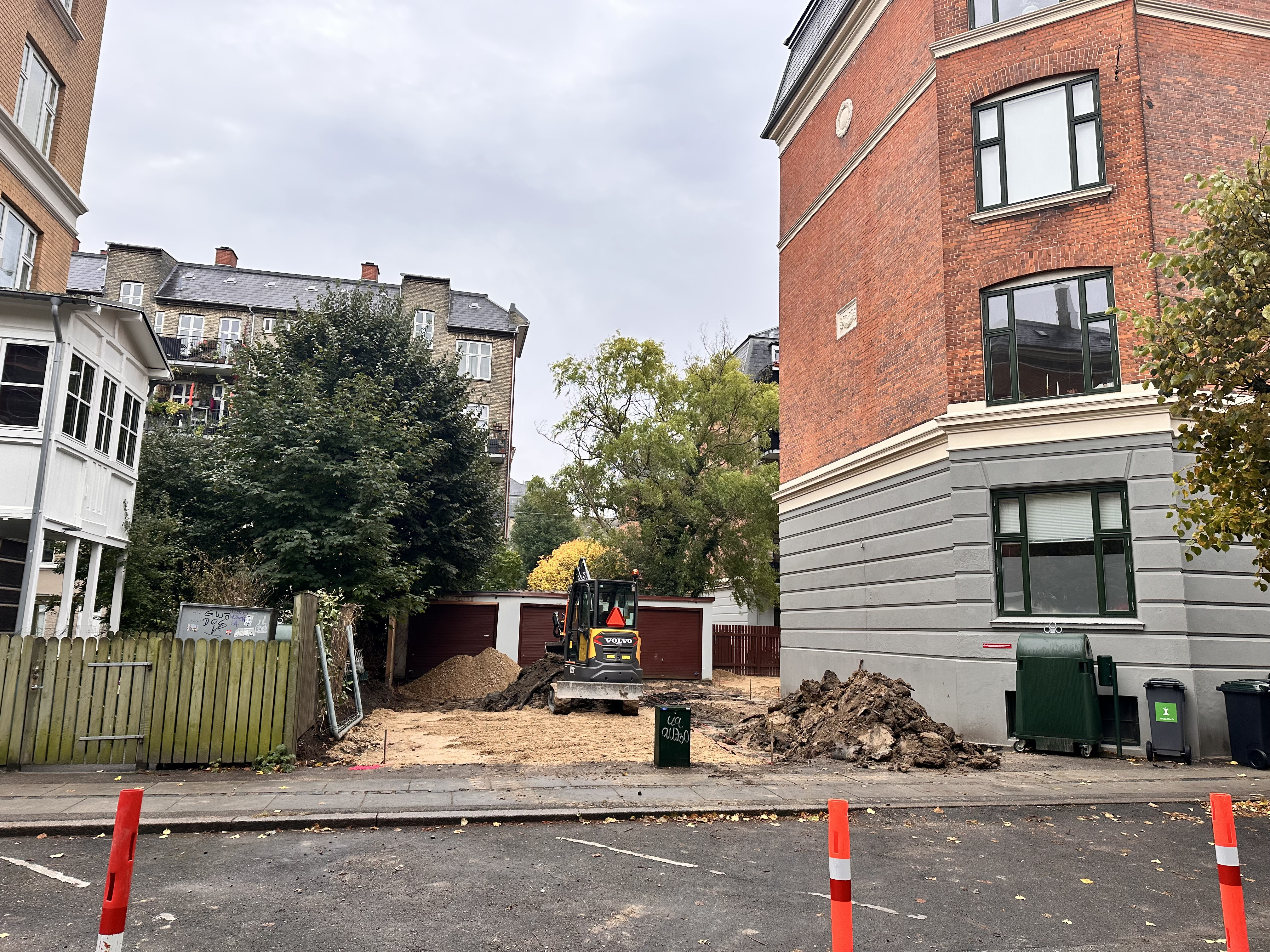 Større opgave omkring ny flisebelægning i gård på Frederiksberg. Inden igangsætning var der asfalt og stort grønt område. Nye afvandings brønde etableres.