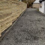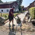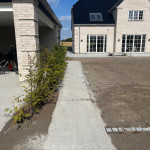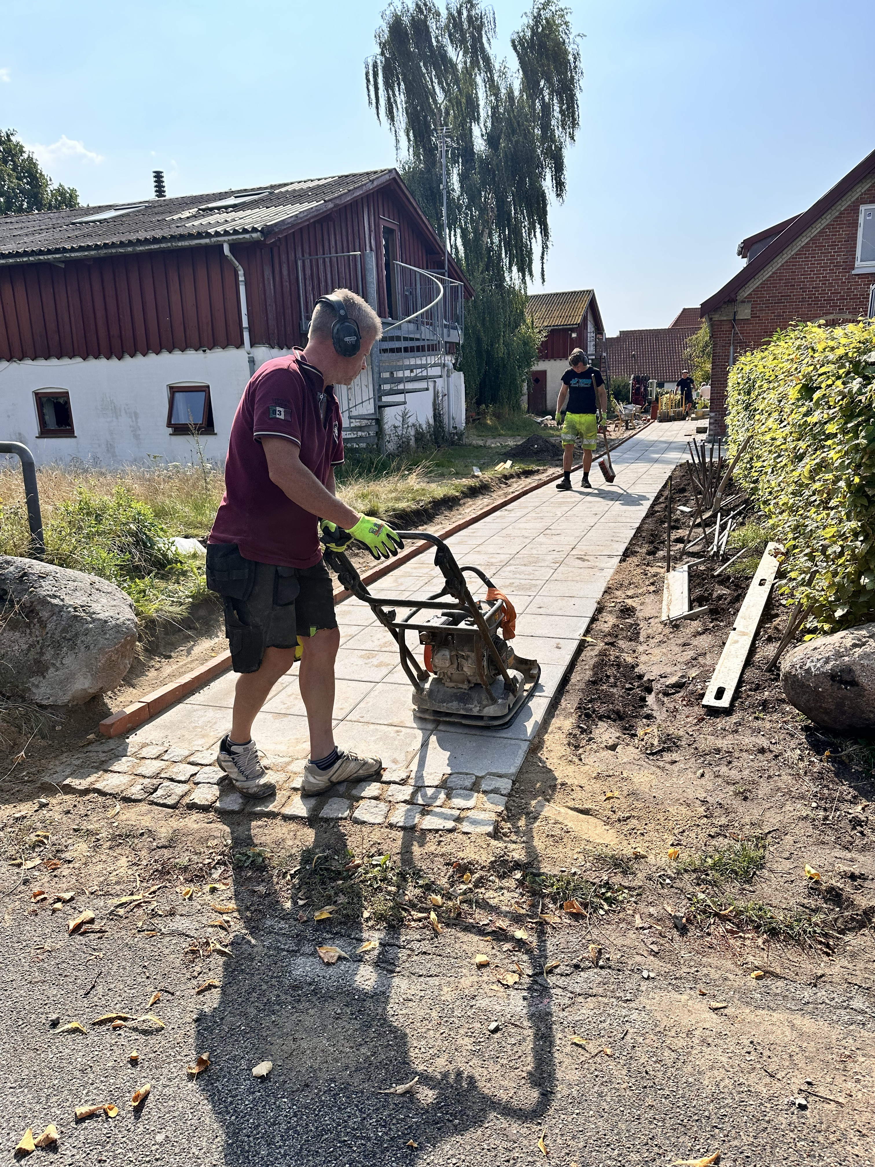 Pro-Anlæg foretog optagning samt bortkørsel af vores indkørsel og hegn. Herefter begyndte arbejdet med den nye indkørsel i form af støbning af kantsten, nyt stabilgrus samt udlægning af nye skærver. I tillæg hertil lavede de også nyt raftehegn.
