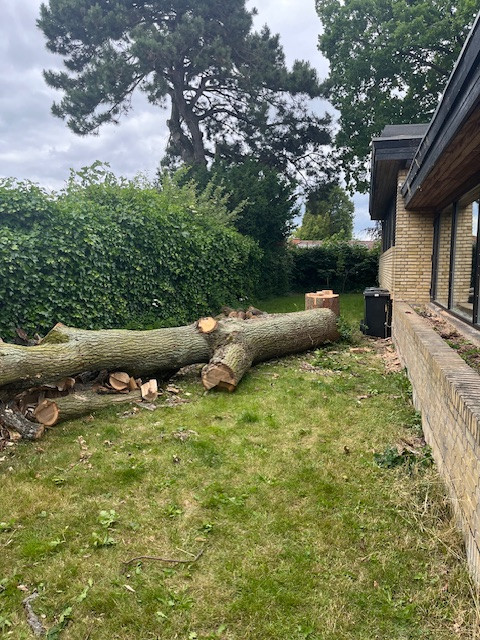 Jeg havde et stort træ i baghaven, som blev fældet. Vi havde på forhånd aftalt, at træet skulle skæres op i mindre stykker, som vi selv kan flække til brænde. Alt blev gjort helt perfekt, og de efterlod haven virkelig pæn og ryddet. Super flot arbejde, og vi er meget tilfredse. Kommunikationen var meget god og ukompliceret.