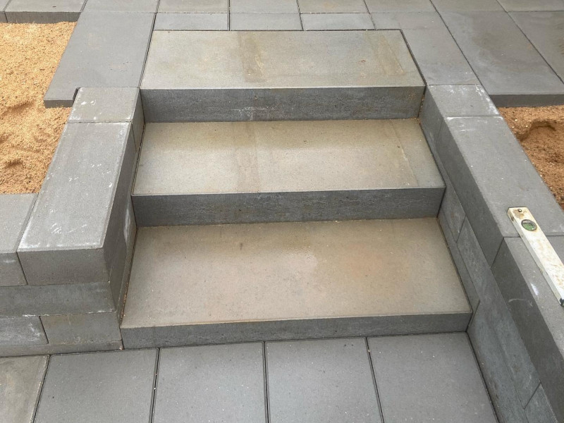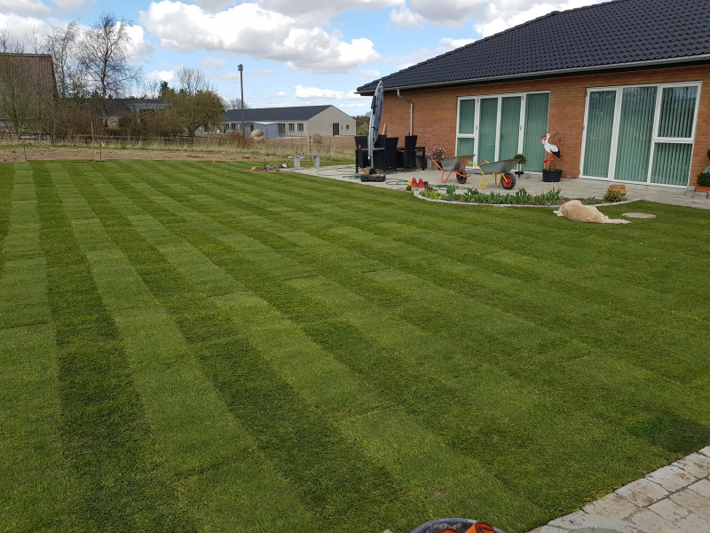 4)Sørger for den sidste finish med at så græs de blottede steder, og efterlade fugesand i en pose.