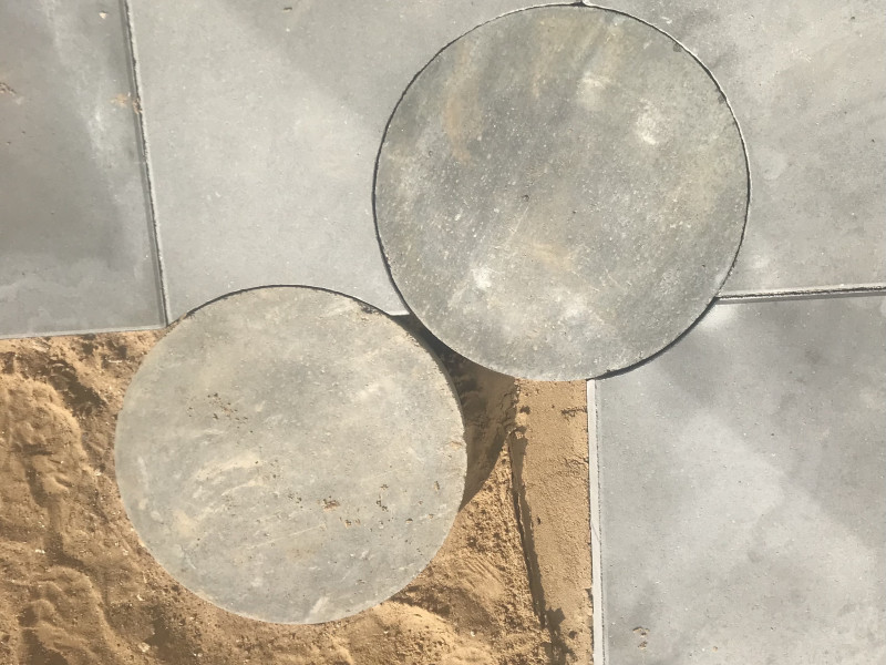 Vi hyrede Jakob til at lave vores indkørsel samt belægning/gangstier rundt om huset. Der var tale om store soldaterfliser på 120x90, og der var dermed ikke de nemmeste fliser at arbejde med.
