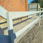 Som mur, langs 22 meter liguster hæk, er der sat kortensstål op, der er fyldt op med jord. Ud fra muren er det opsat 2 kummer også i kortensstål og i mellem de 2 kummer er der lavet en bænk i egetræ.