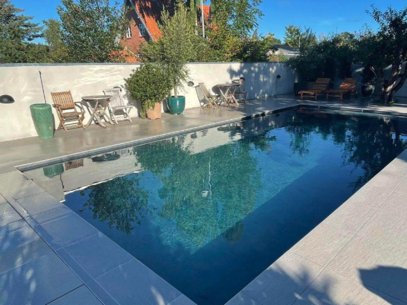 Vi fik skiftet en større pool ud med en mindre og lagt fliseterrasse på flisefødder omkring den. Grunden blev også forhøjet og jævnet ud og rullegræs lagt på. Thomas og co lavede et fantastisk arbejde og fik det tilpasset ind til vores tidsplan og krav omkring et større byggeprojekt vi kørte samtidigt med en tilbygning. Vi er super tilfredse med dem og kommer klart til at bruge dem igen.