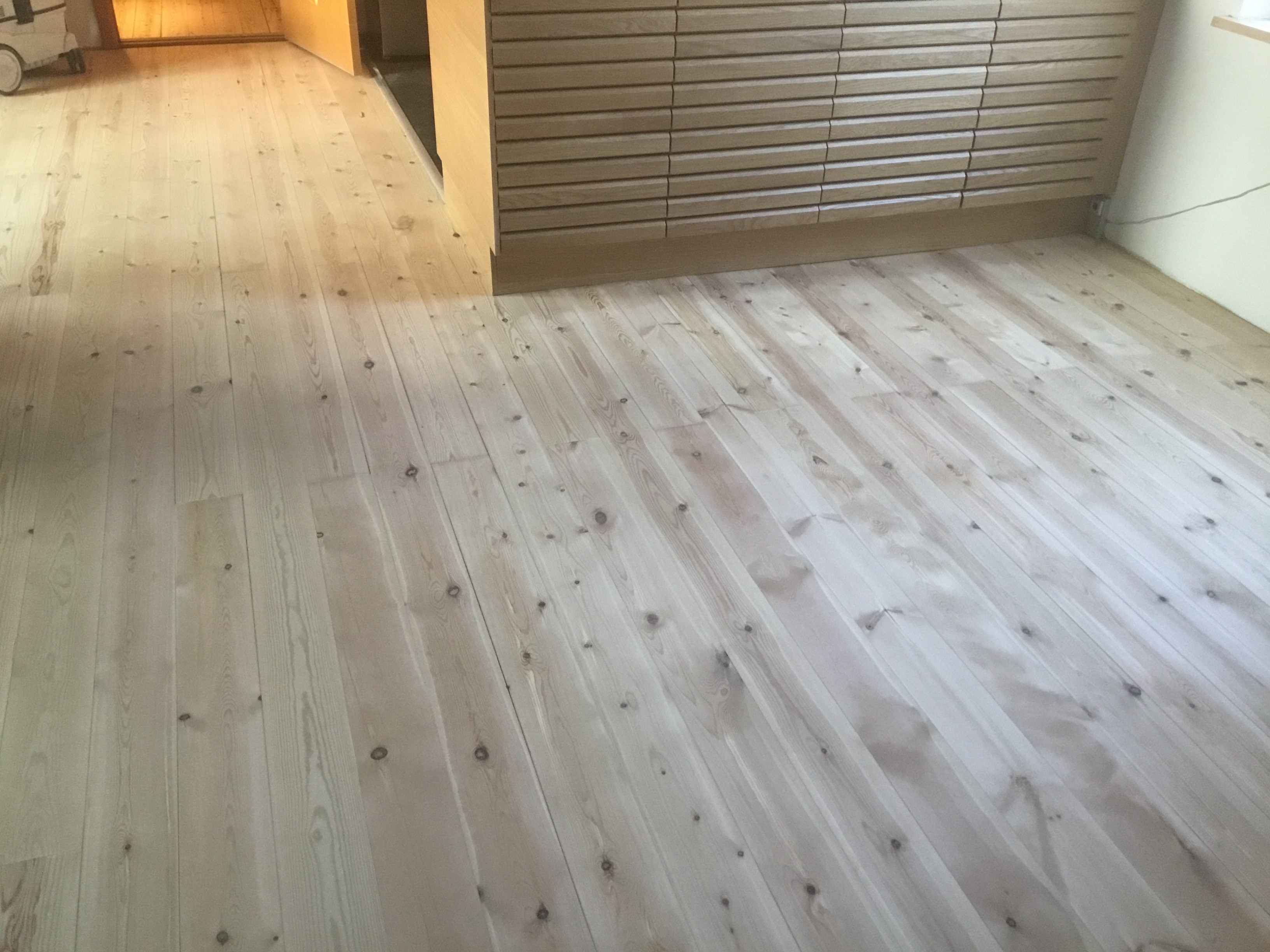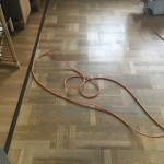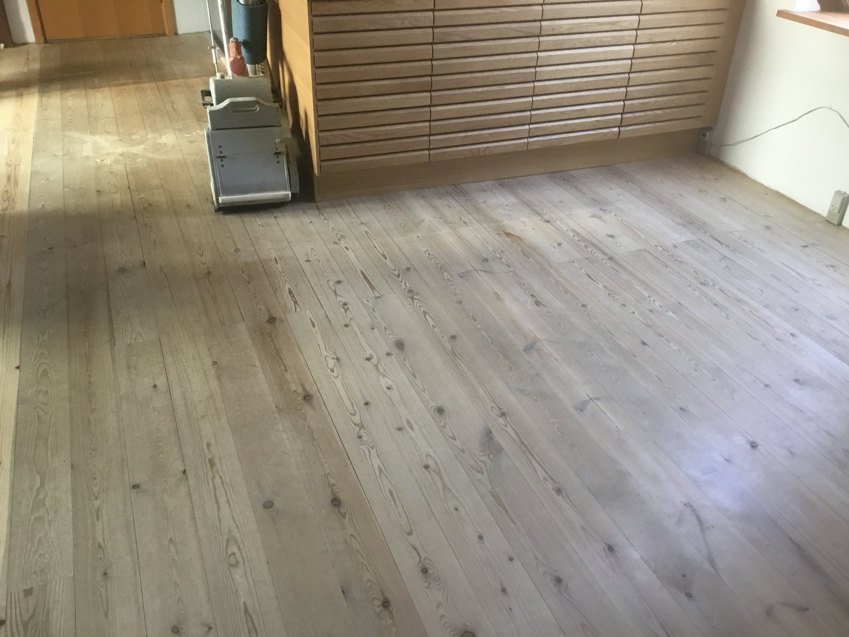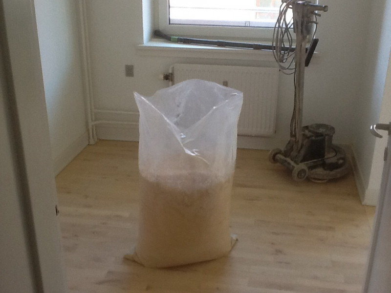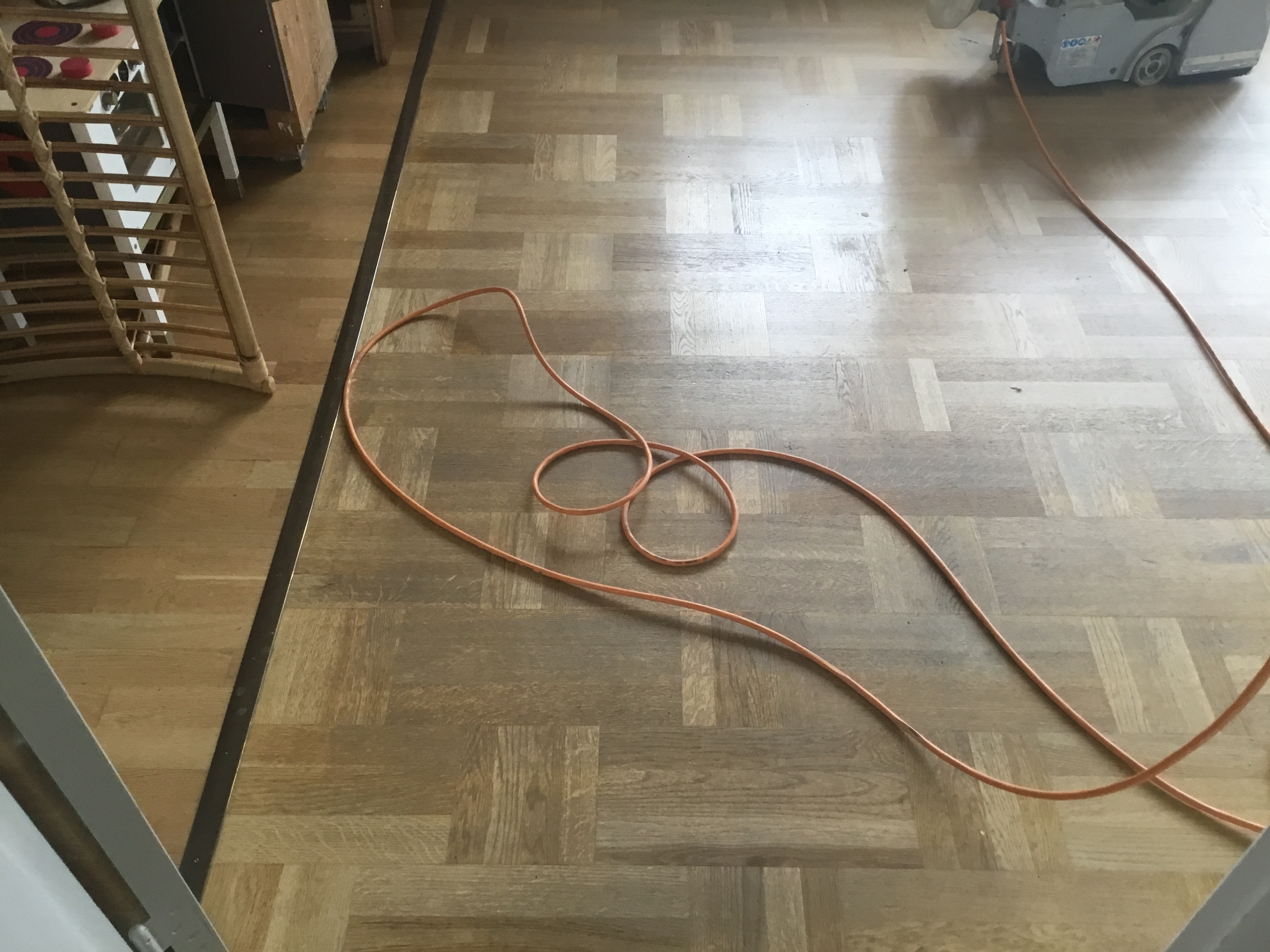 I juni skulle han så slibe stue og spisestue og kunne godt huske gulvet. Igen kom han som aftalt og igen 2 dage, så var det klart.
