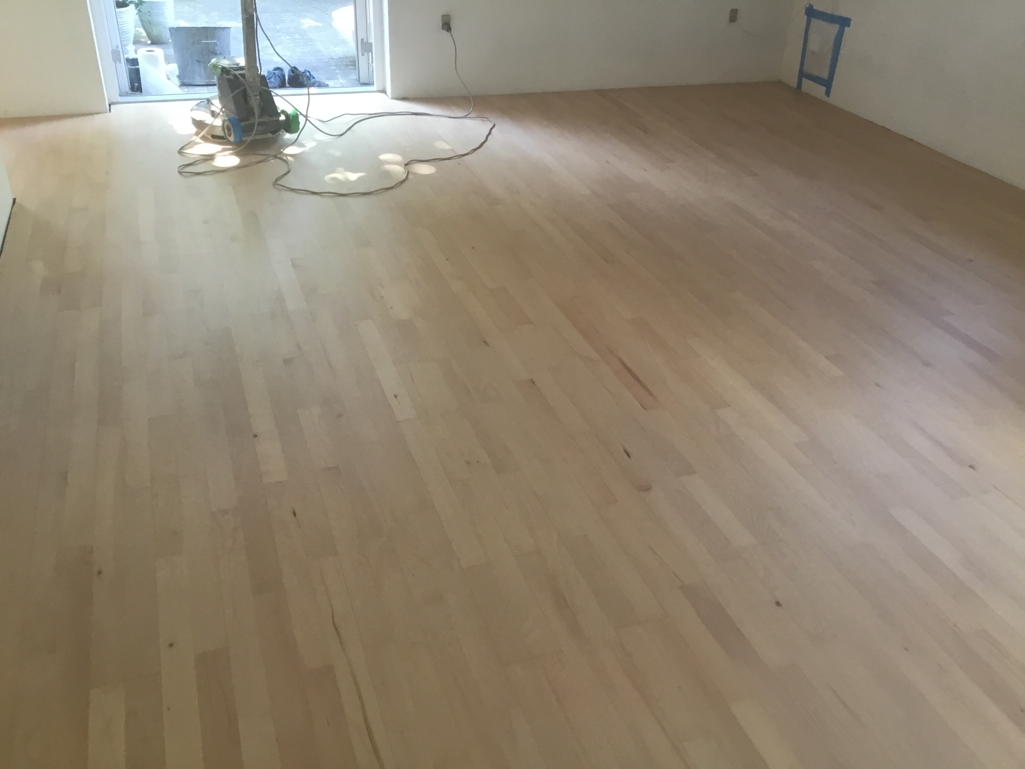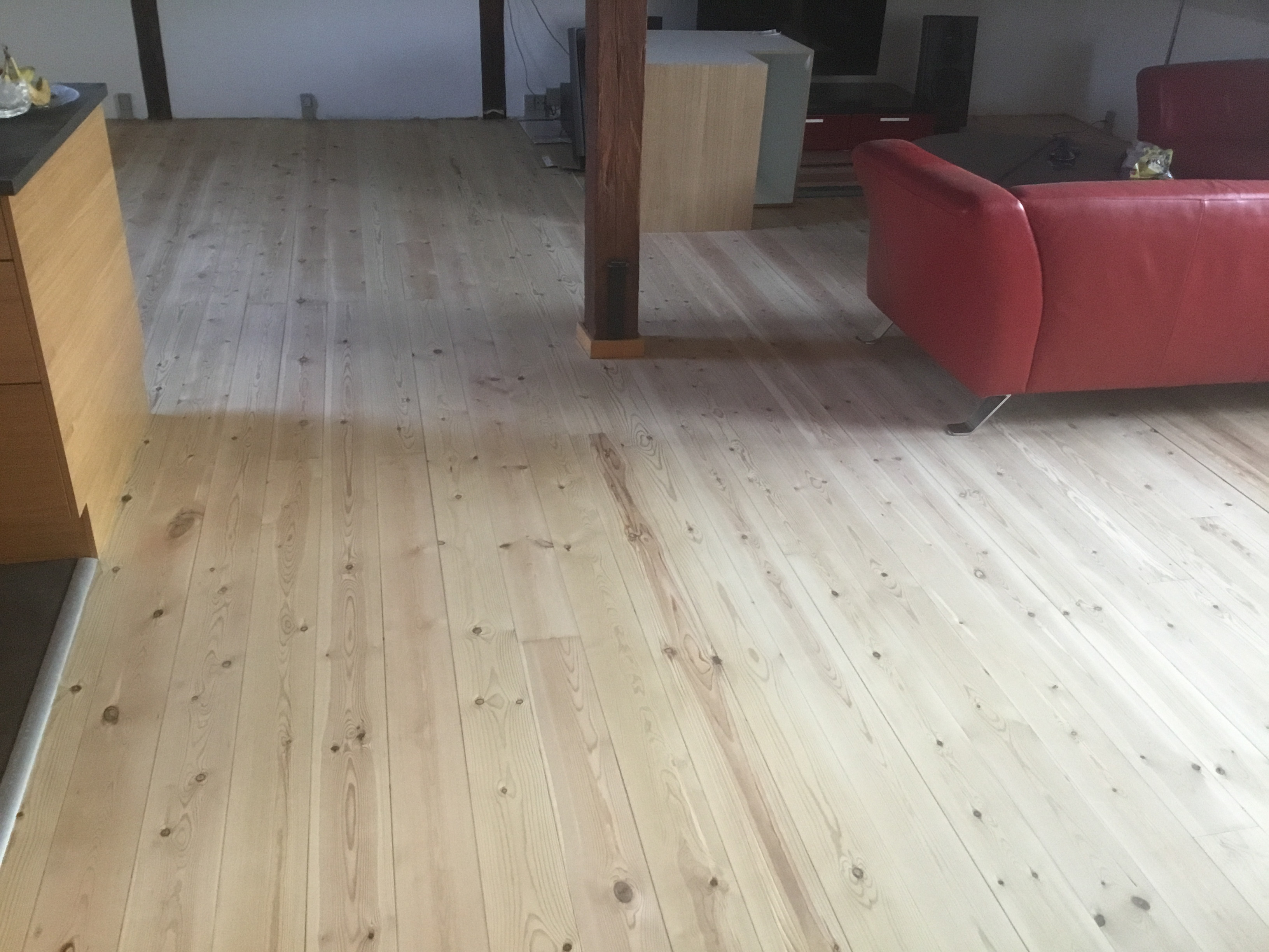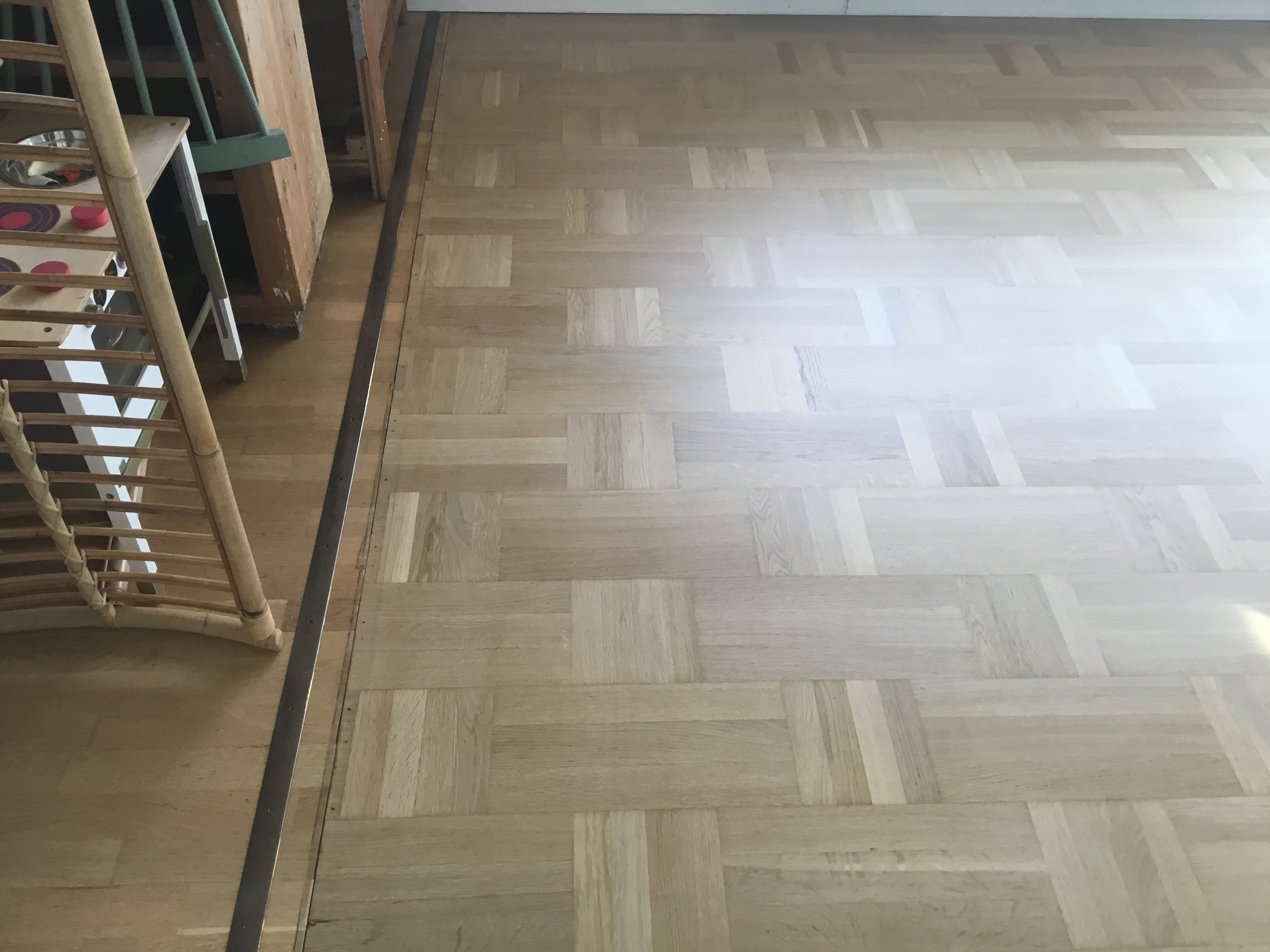 I juni skulle han så slibe stue og spisestue og kunne godt huske gulvet. Igen kom han som aftalt og igen 2 dage, så var det klart.