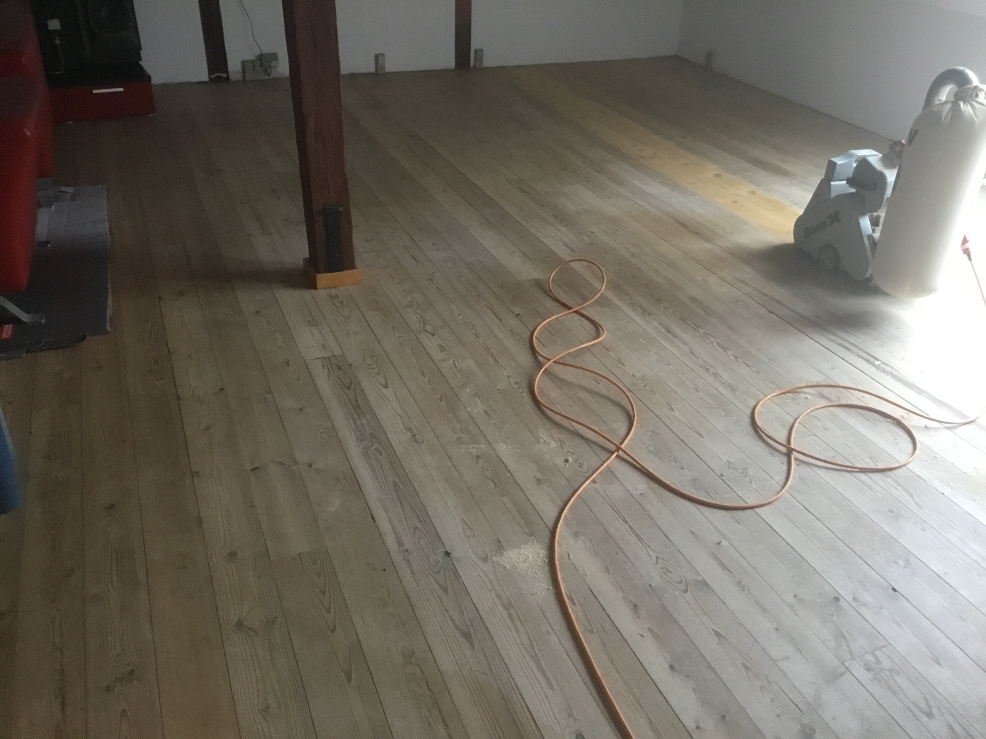 Kim har slebet alle mine trægulve i huset og det er blevet så flot.