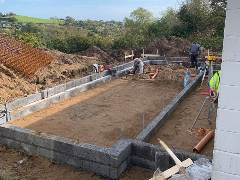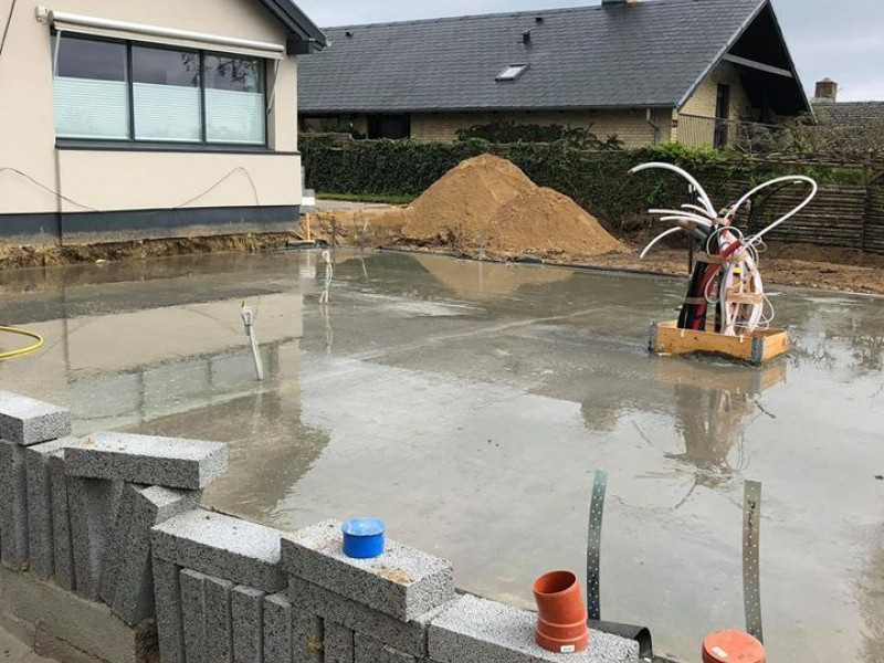 Sokkel og gulvvarme i bryggers og badeværelse udskiftet.