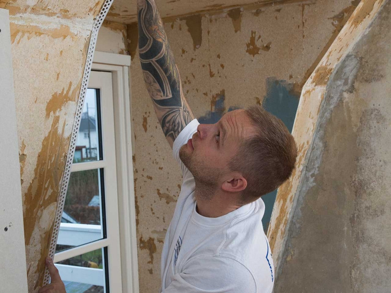 Nedtaget arkustikplader i en stue og efterfølgende fået malet loftet