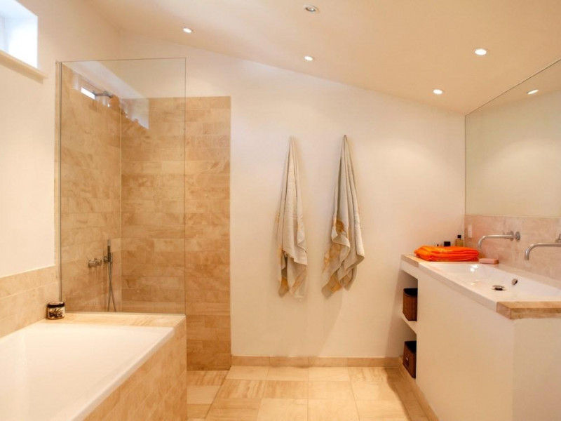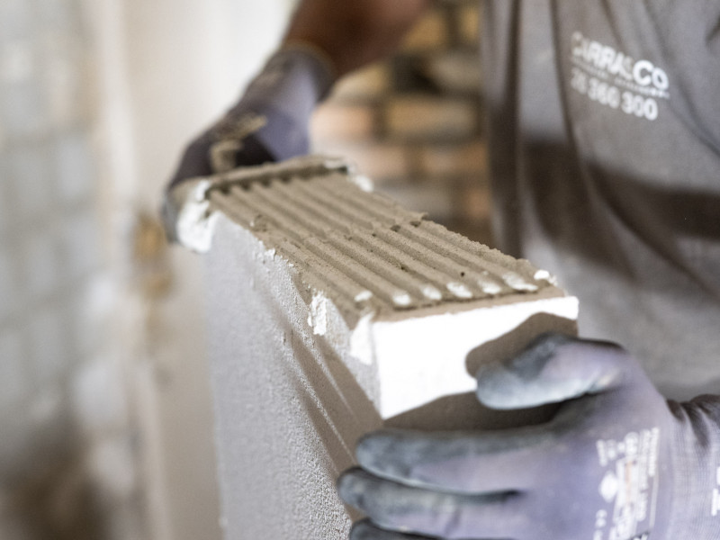 Murerarbejdet; støbning af gulve med rette fald, lukke og pudse vægge, fliser på gulv og vægge - med meget flot finish.