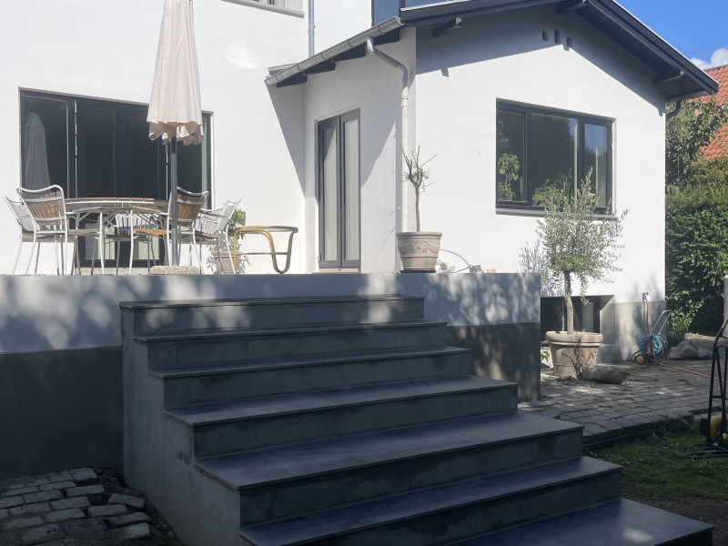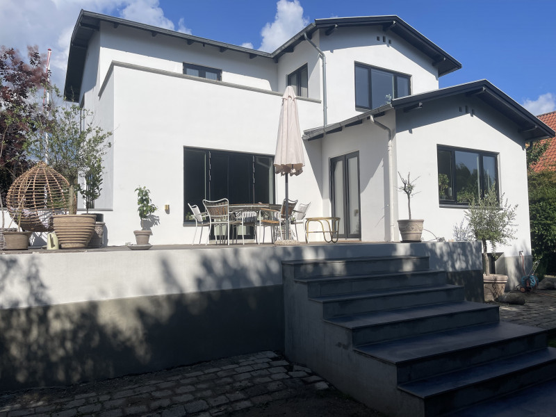 I forbindelse med at vi fik skiftet tag trængte vores facade også til en komplet renovering. Carrasco tryllede ligesom han plejer - og mens vi var på ferie fik de ordnet diverse reparationer i murværket, pudset hele facaden op og malet det. Vi er selv super tilfredse med resultatet, og vi har fået så mange komplimenter fra naboer og forbipasserende for hvor flot huset er blevet.