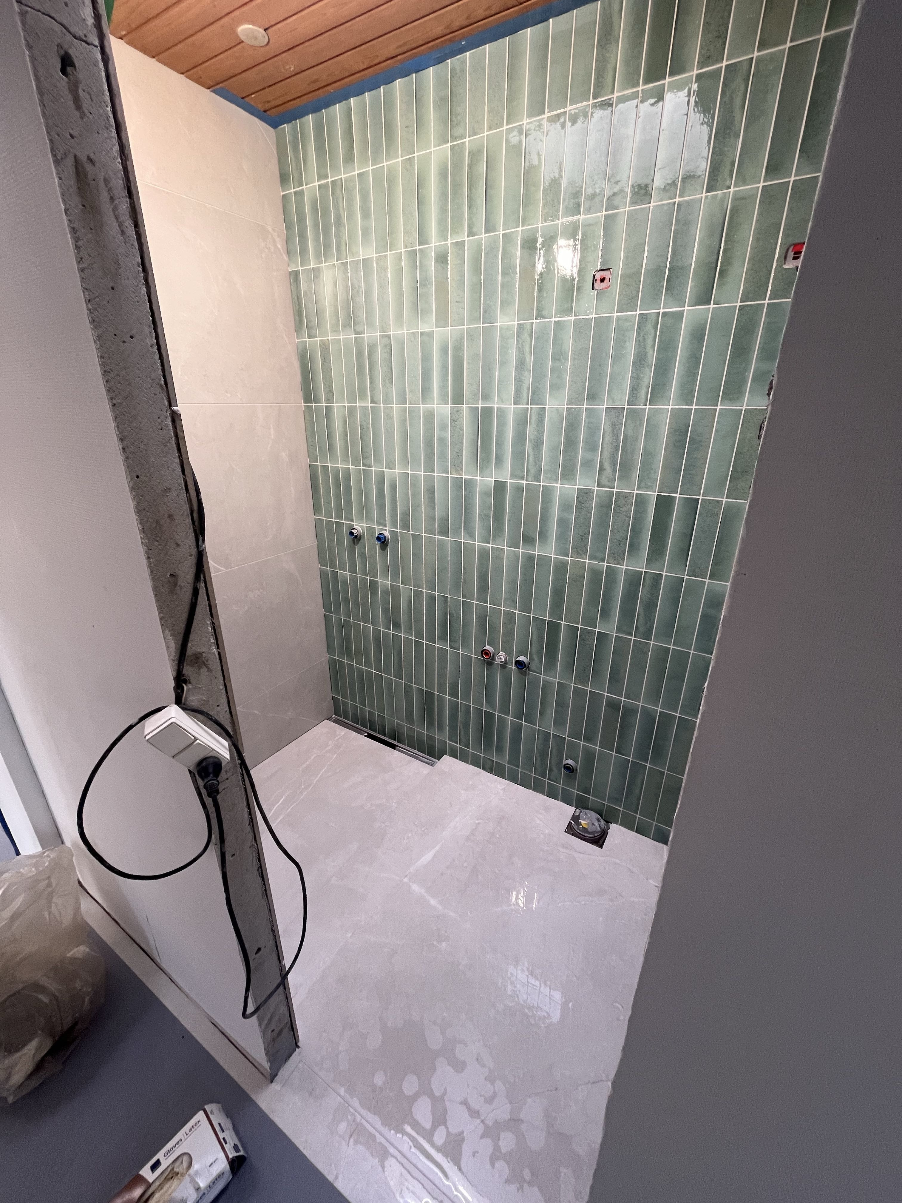 Jeg har valgt at ligge disse billeder op af projektet, for jeg mener min murer kristian har leveret et meget flot stykke arbejde, har har lavet to badeværelser, entreen og teknikrum. Der har under hele projektet været en god stemning og der er blevet talt en masse med kristian om detaljer, i sidste ende noget virkelig flot arbejde.