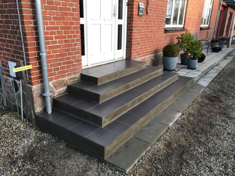 Udskiftning af fuger i gavle, reparation af trappe, reparation af lyskasse, pudsning af sokkel