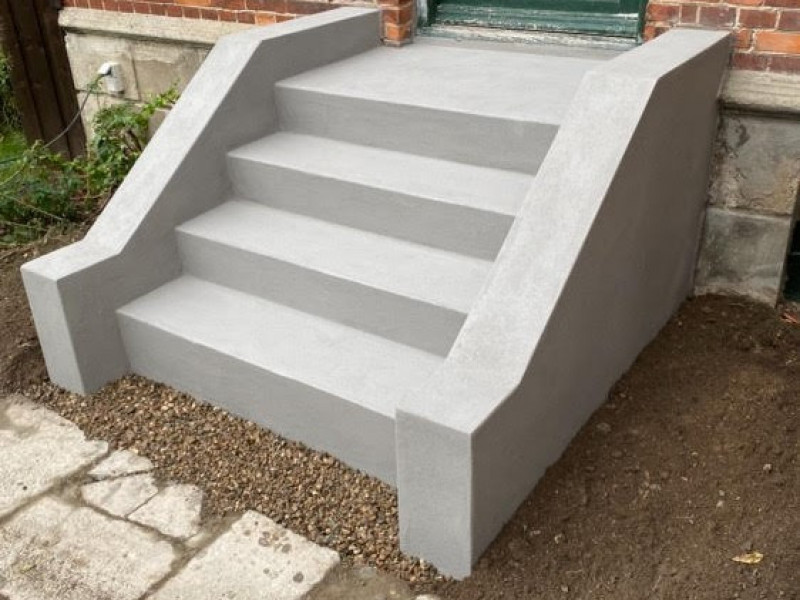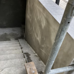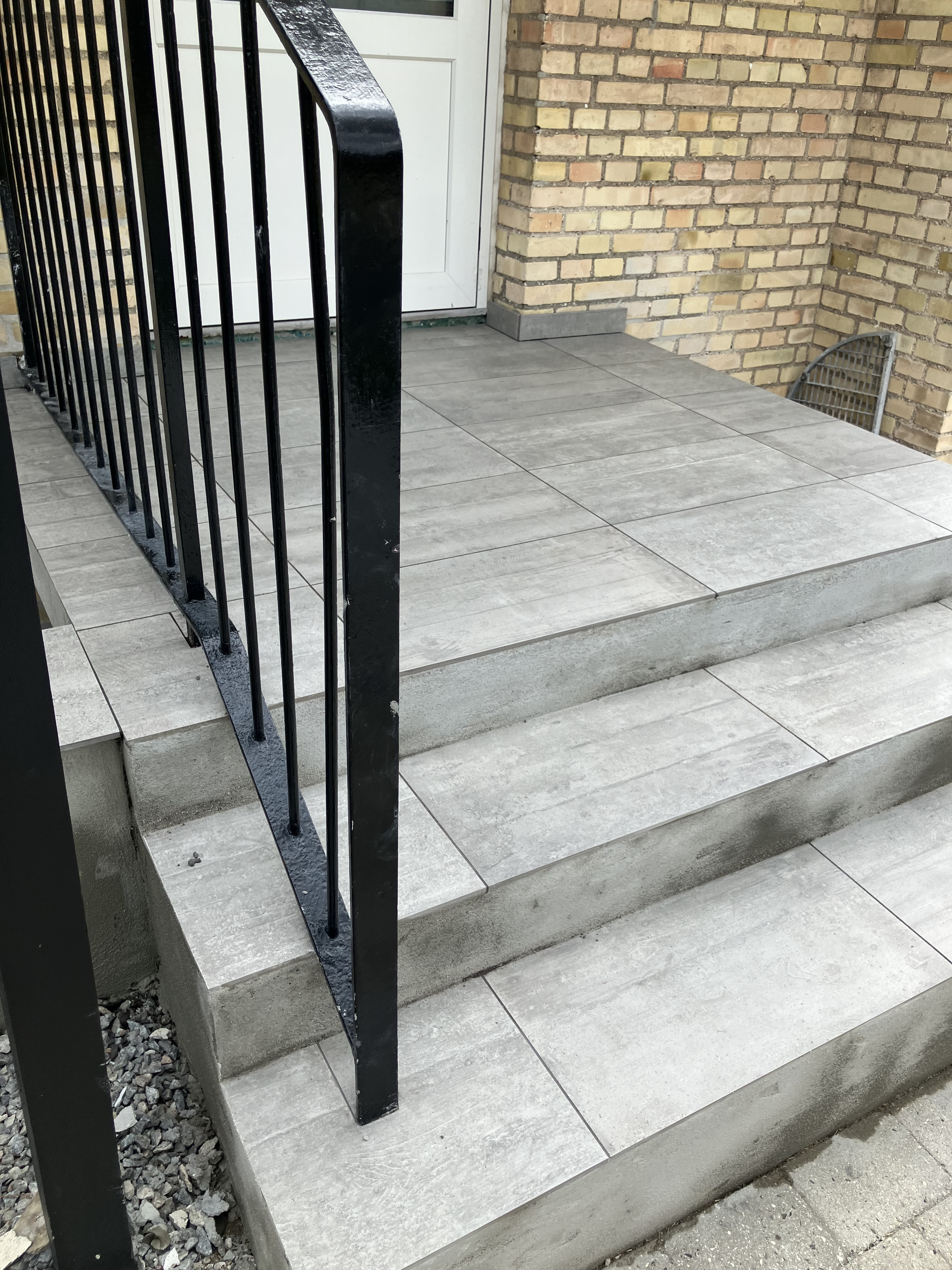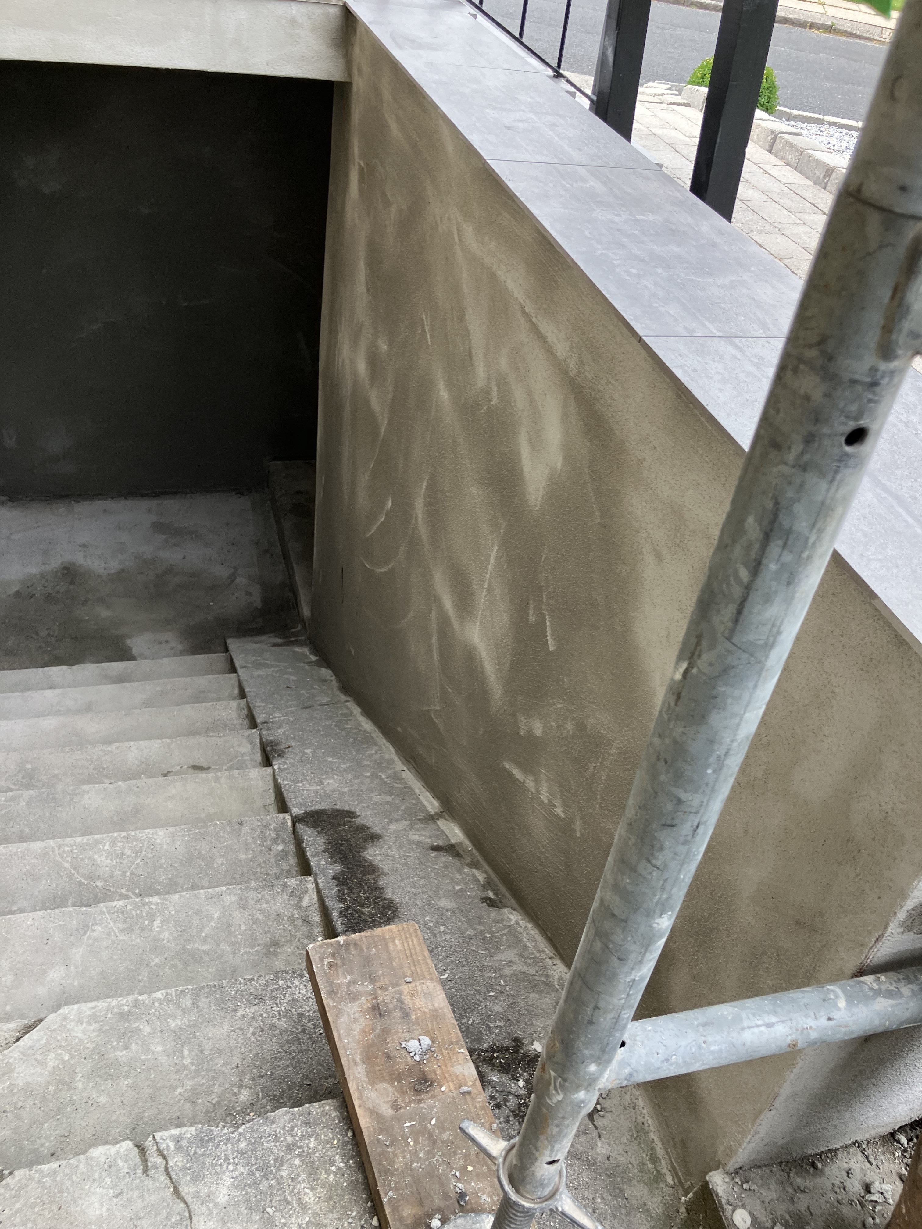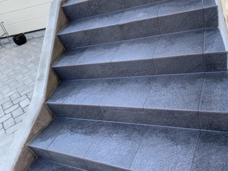I denne omgang har jeg fået omfuget en skorsten, der er pudset vægge op i en kælderskakt, samt der er lagt fliser på en udendørs trappe.