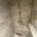 Resultatet er blevet meget pænt, med gennemtænkt fliseplacering, med lige linjer i et rum hvor hjørnerne ikke er vinkelrette, og med en flot finish i fugerne. Vvs-arbejdet er også blevet fint.
