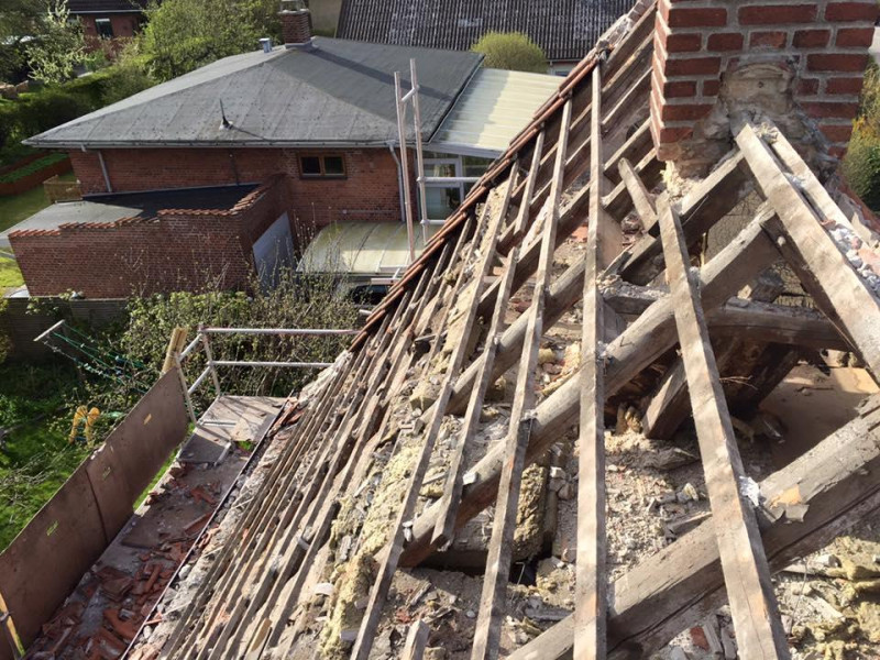 ved besigtigelse af dit tag kunne jeg konstatere at dit tag var meget nedbrudt for ikke at tale om din skorsten som var næsten faldefærdig.
