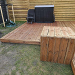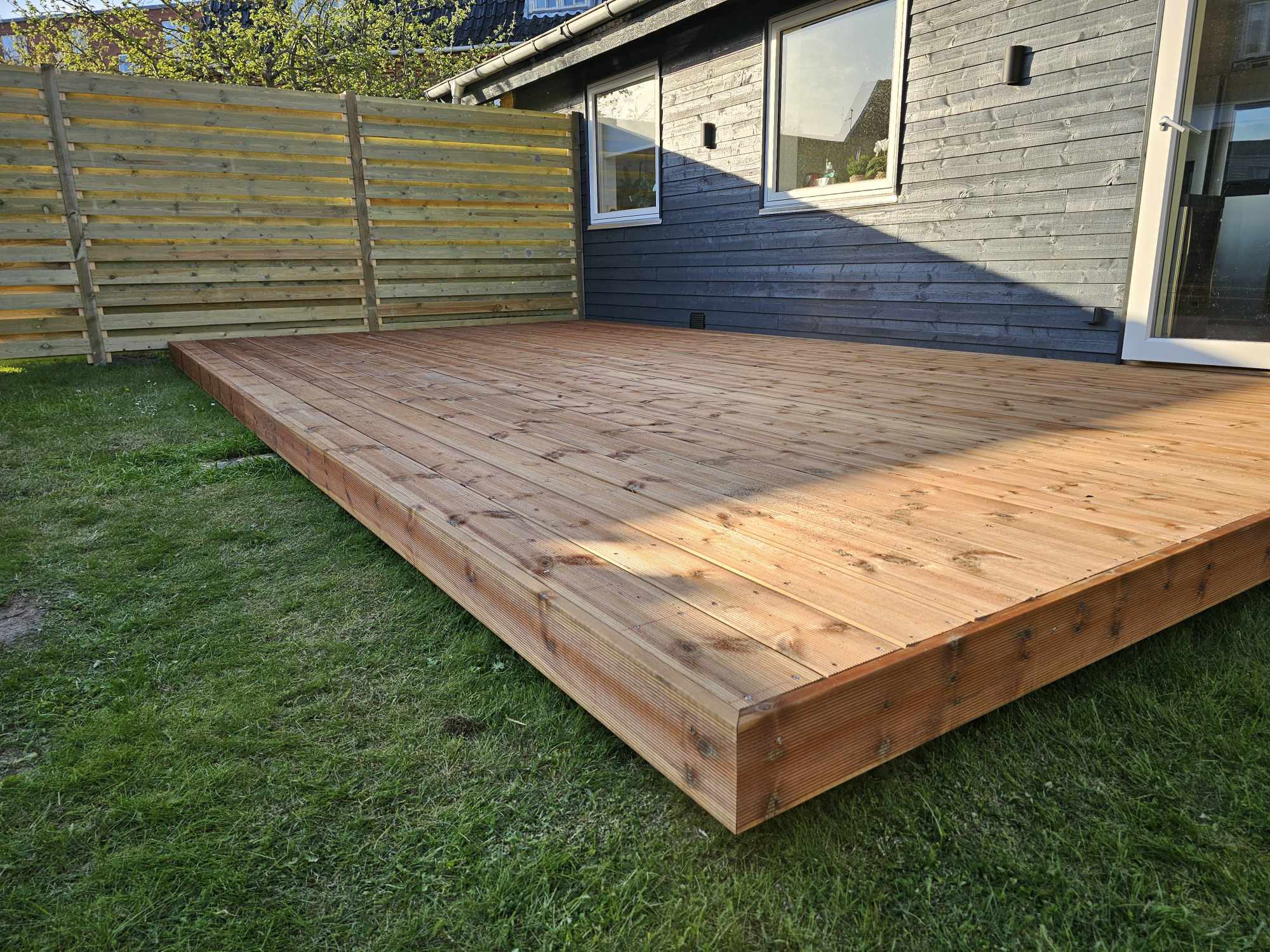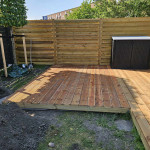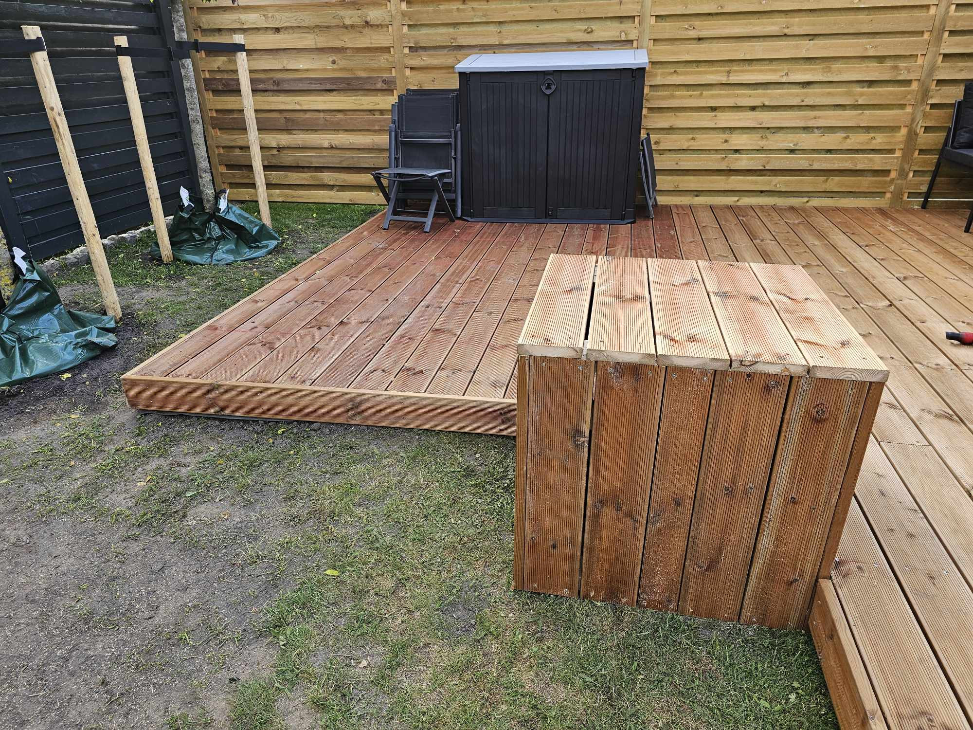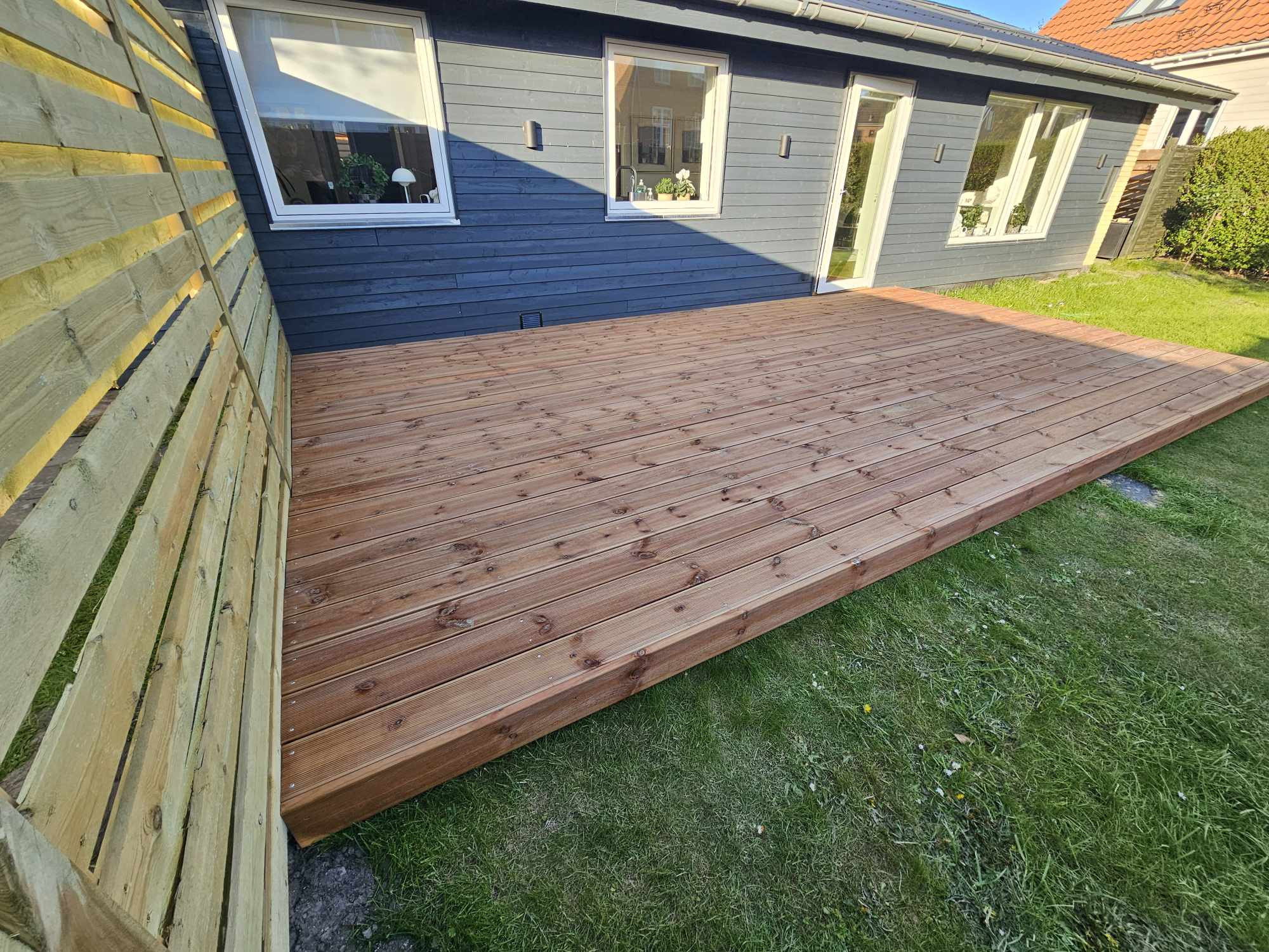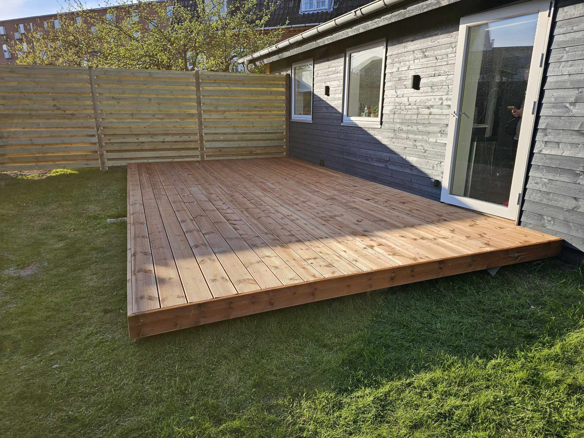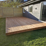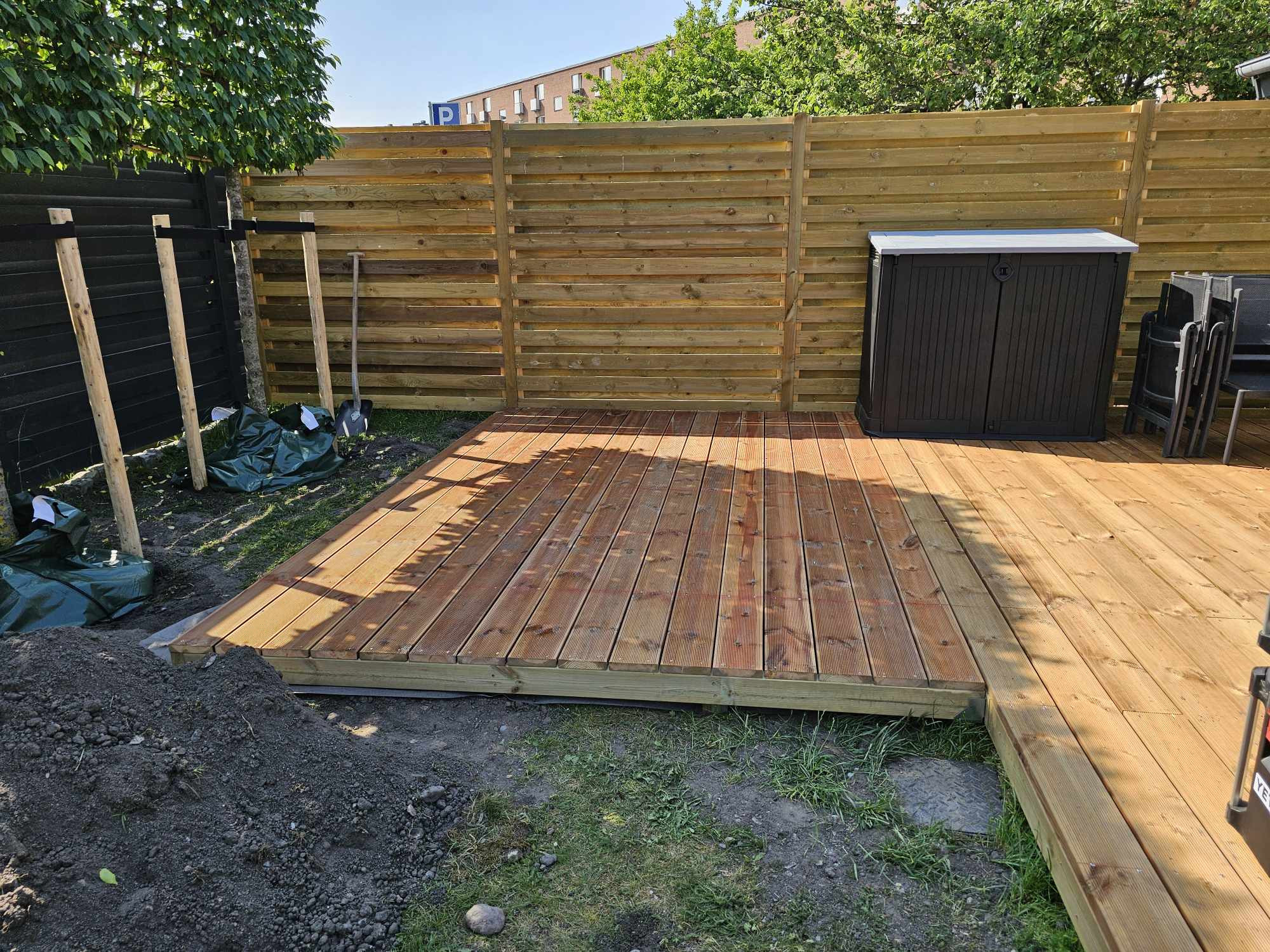 Vi bad Rasmus om at erstatte det gamle utætte tag og lægge et nyt gulv i vores overdækkede pergola/terrasse, og vi har fået et meget fint hyggehjørne med et tag, der ikke længere lækker, og et superfint trægulv. Det gik hurtigt, og vi er meget glade for resultatet. Vi kommer helt sikkert igen næste gang vi har et projekt.