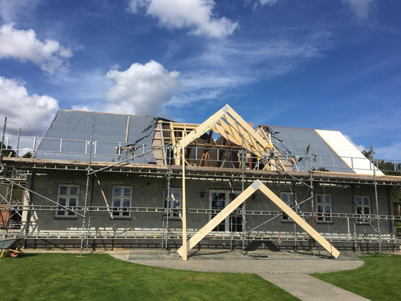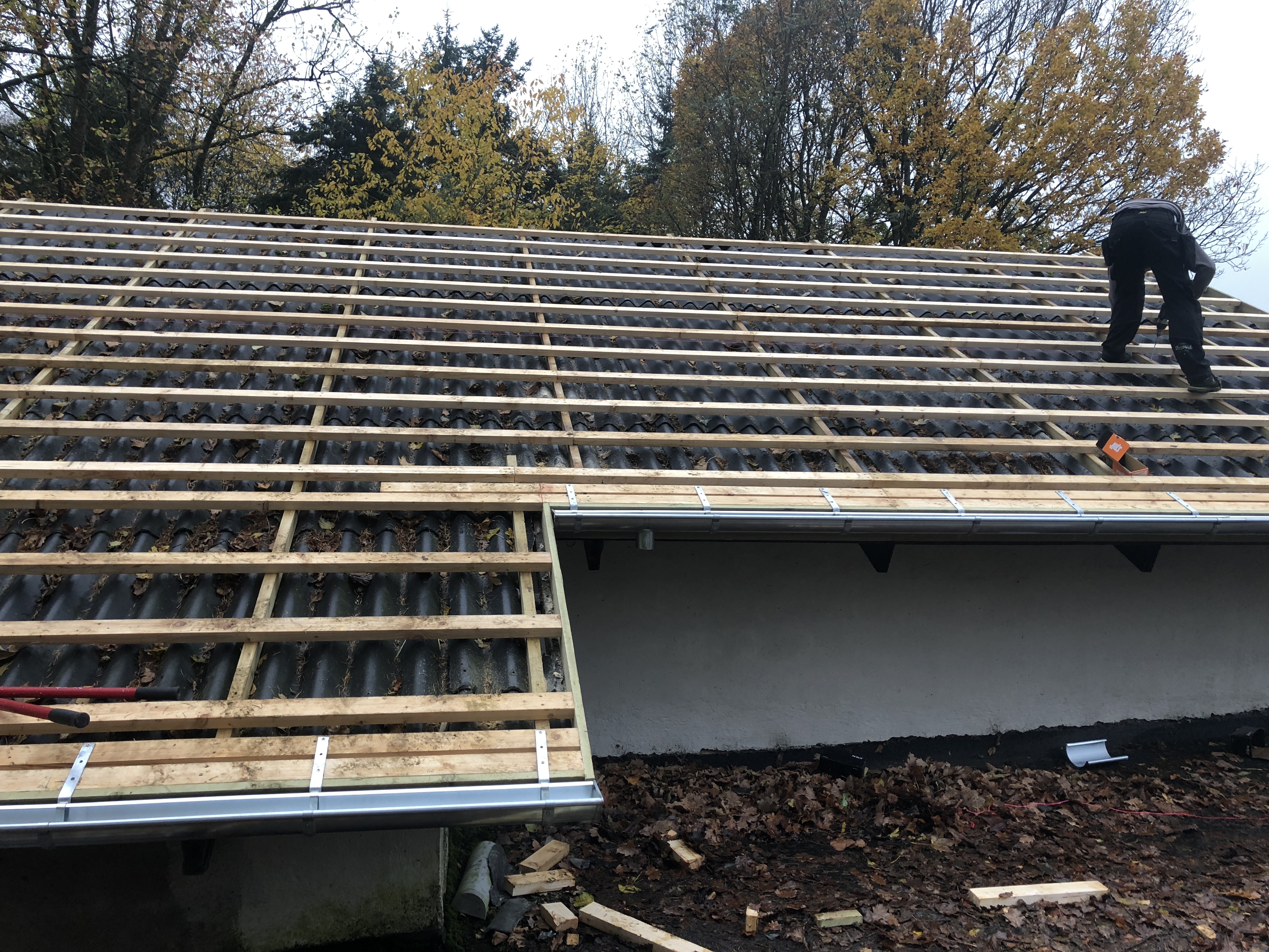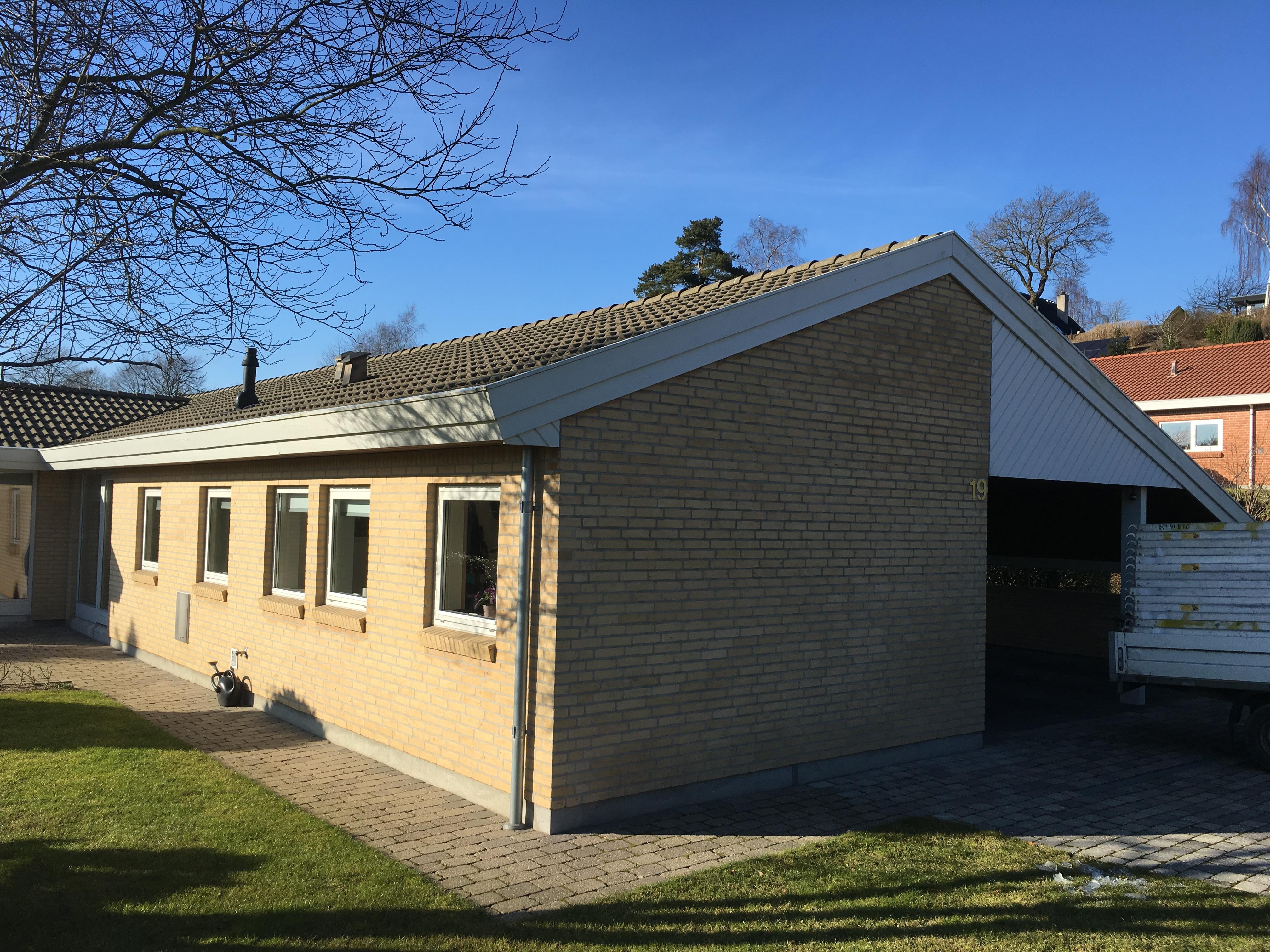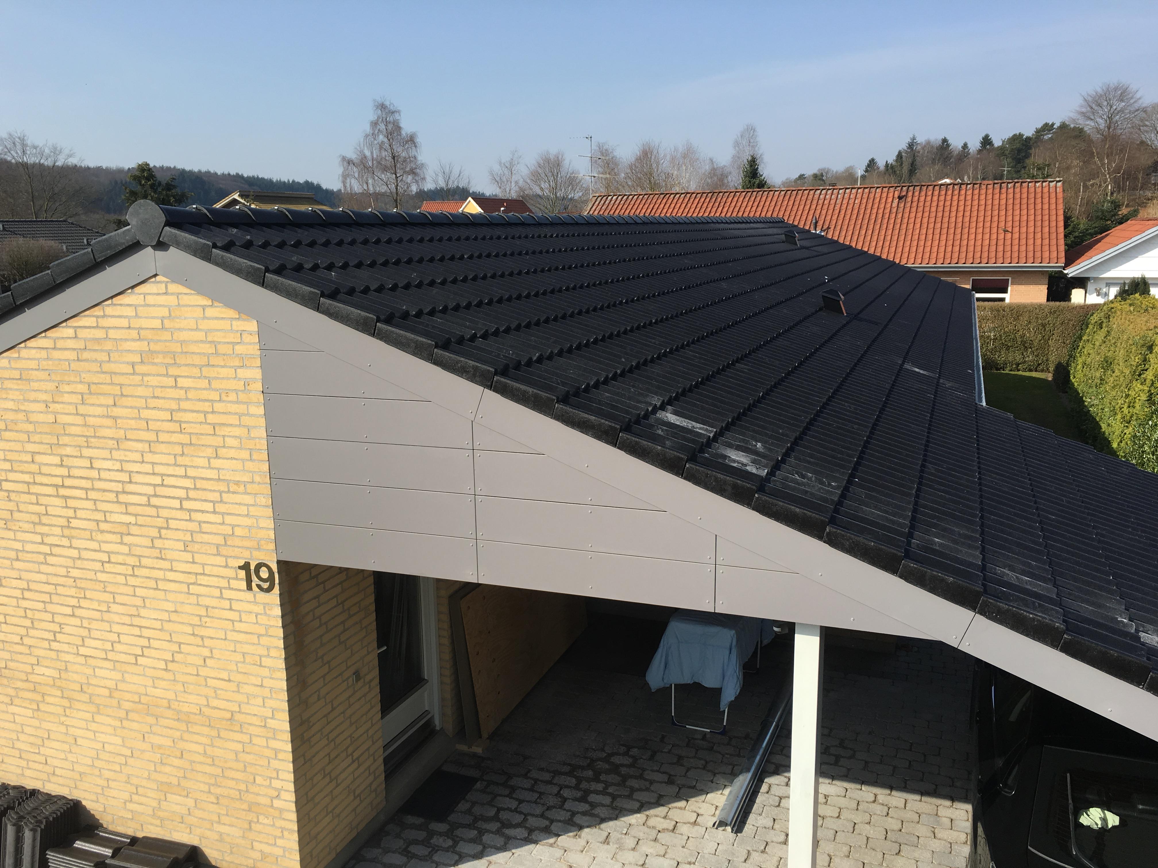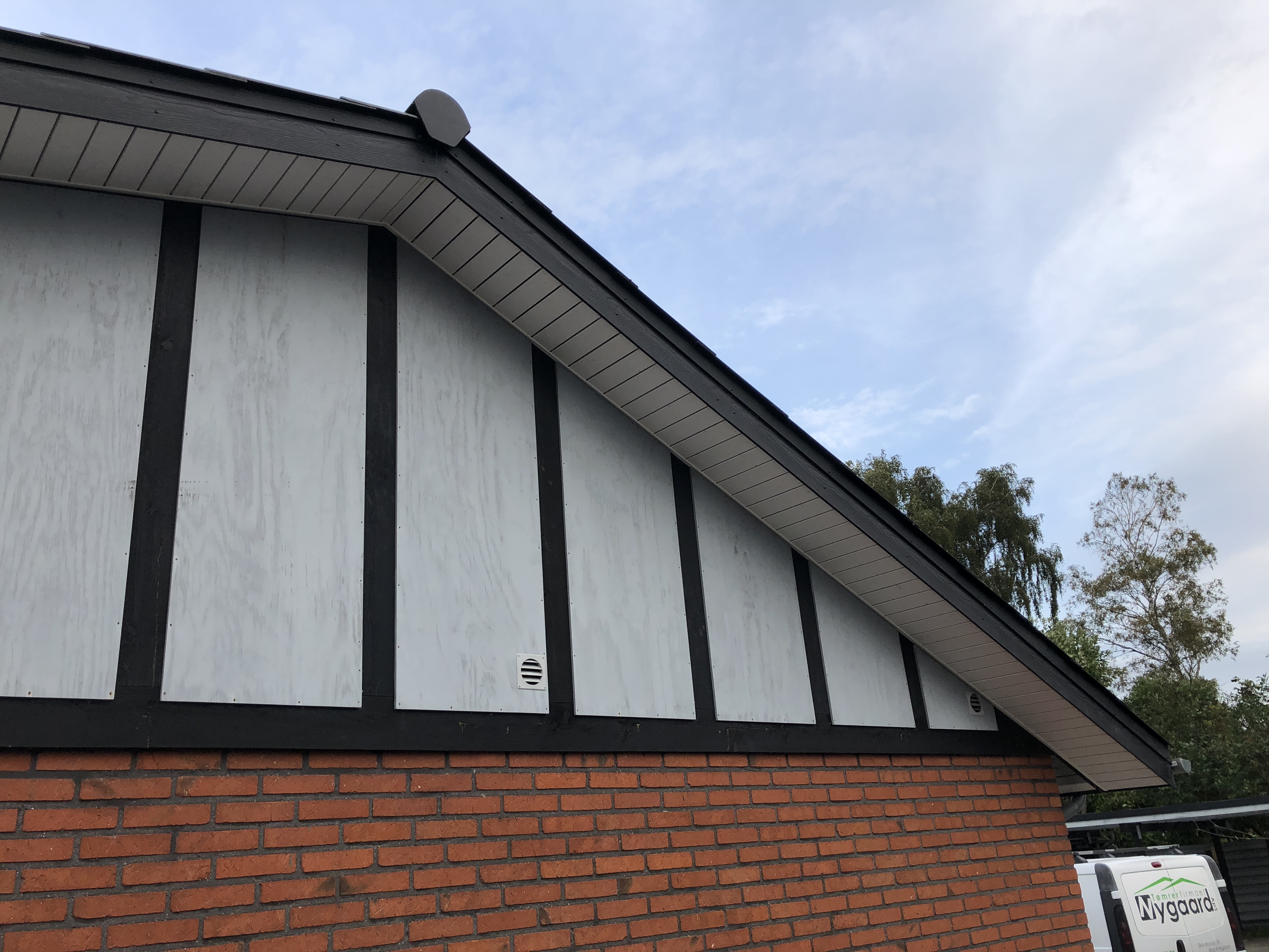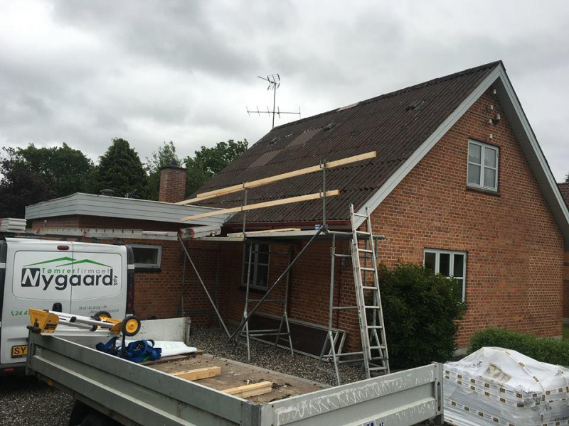 Efter Mads Nygaard, Tømrerfirmaet Nygaard Aps havde besigtiget og undersøgt taget på vores hus, blev det i samråd med firmaet besluttet at foretage udskiftning af tag, undertag, tagrender, facadebeklædning, efterisolering m.m.