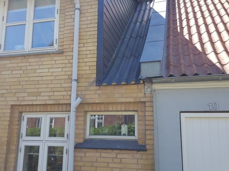 En af vores tagsten var på vej til at falde ned, og den fik Michaels folk hurtigt sat på igen. I sammen omgang skiftede de en anden tagsten, som var gået i stykker.