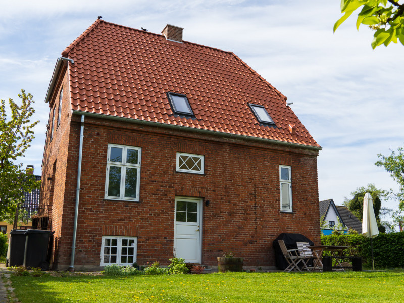 Hertil vidste vi, at taget snart ville skulle skiftes og vinduerne var ved at være ret slidte og punkteret. Så det fik vi også aftalt med virksomheden. Her snakkede vi dog forbi hinanden ift. hvor meget tag skulle skiftes (da huset er delt op i en hovedbygning med en tilbygning), men det der fundet en god og hurtig løsning på undervejs i projektet. Huset blev malet udendørs på alle vægge og indendørs - hvor der var udskiftet vinduer og døre.