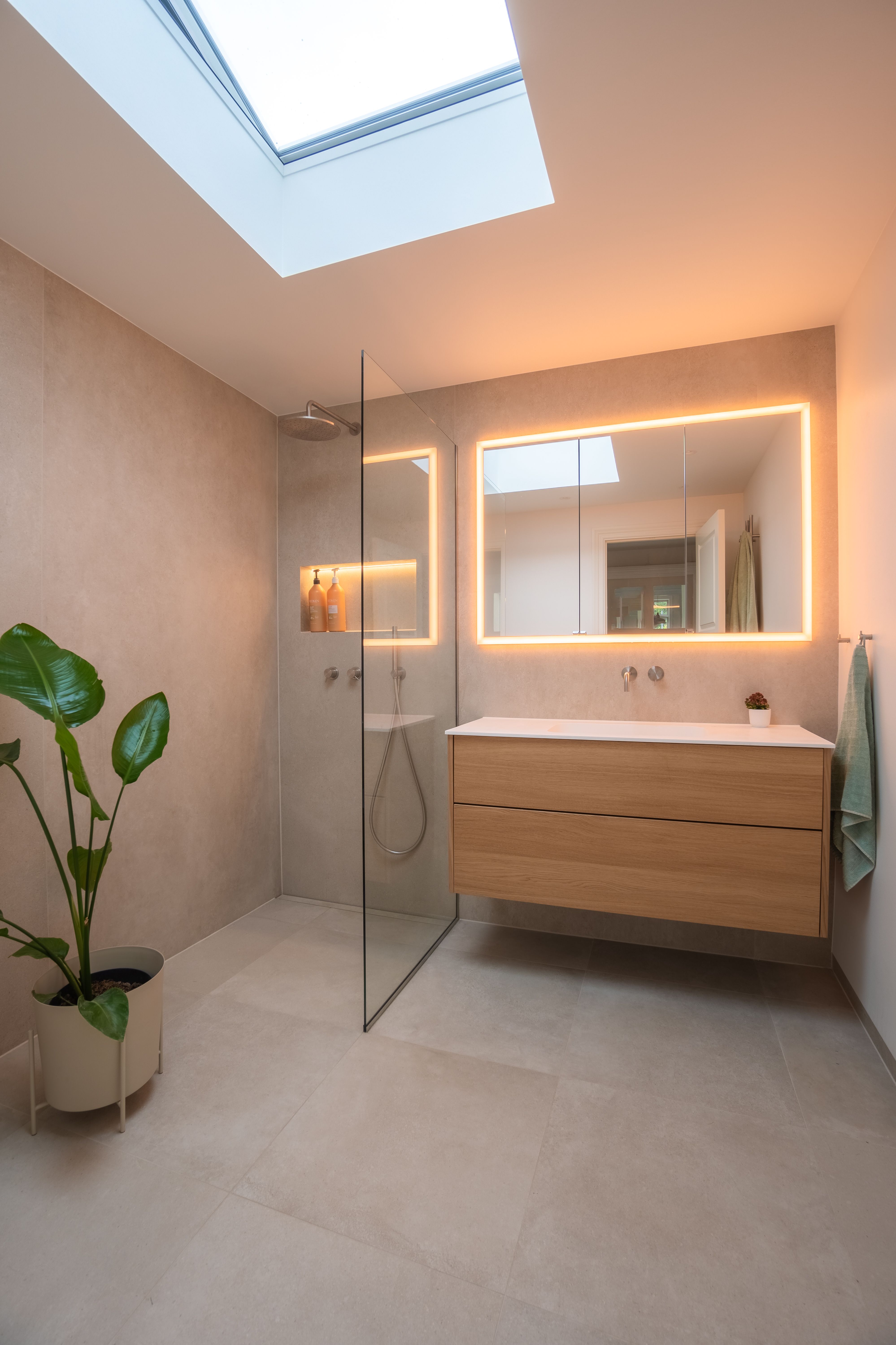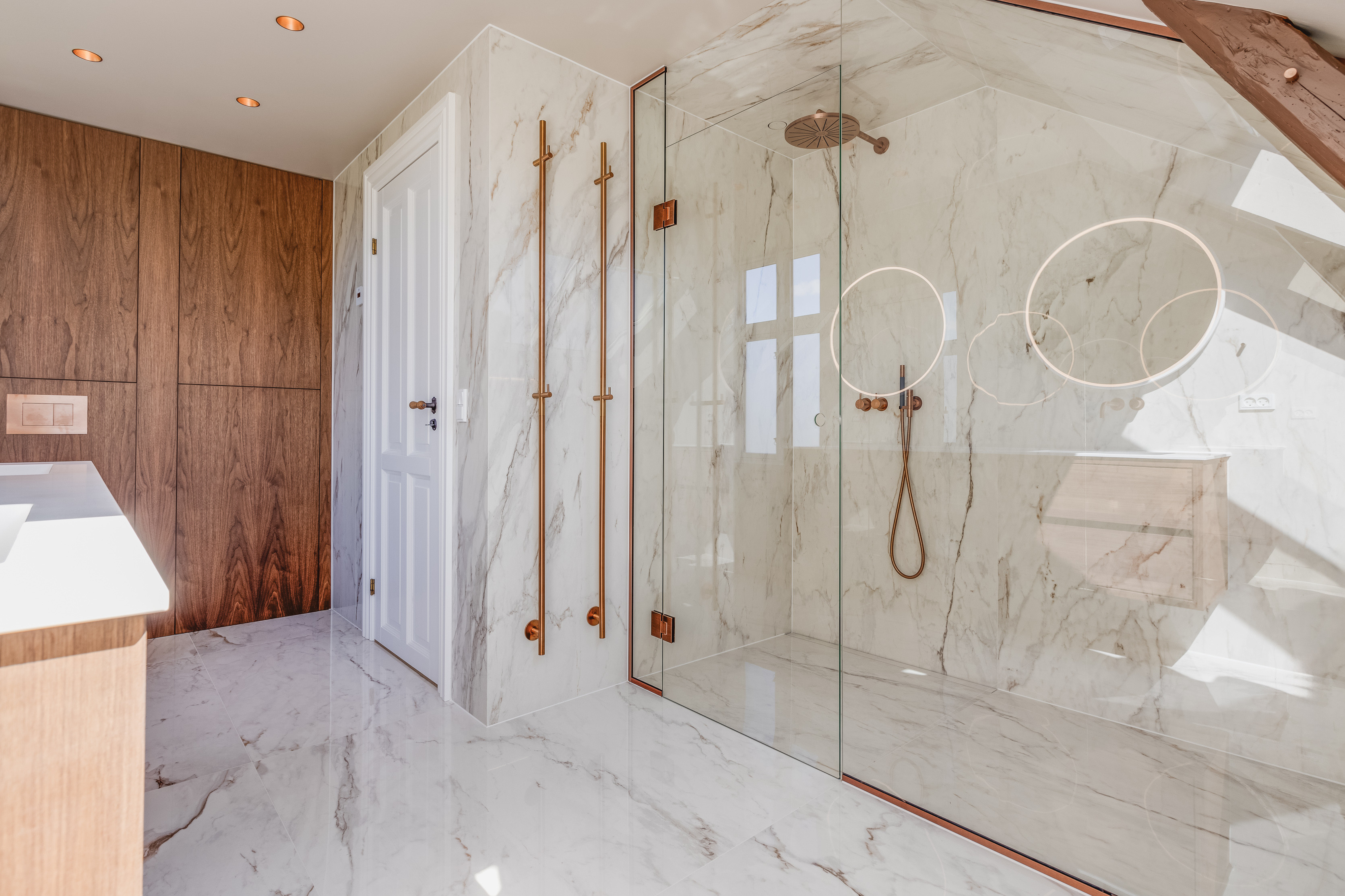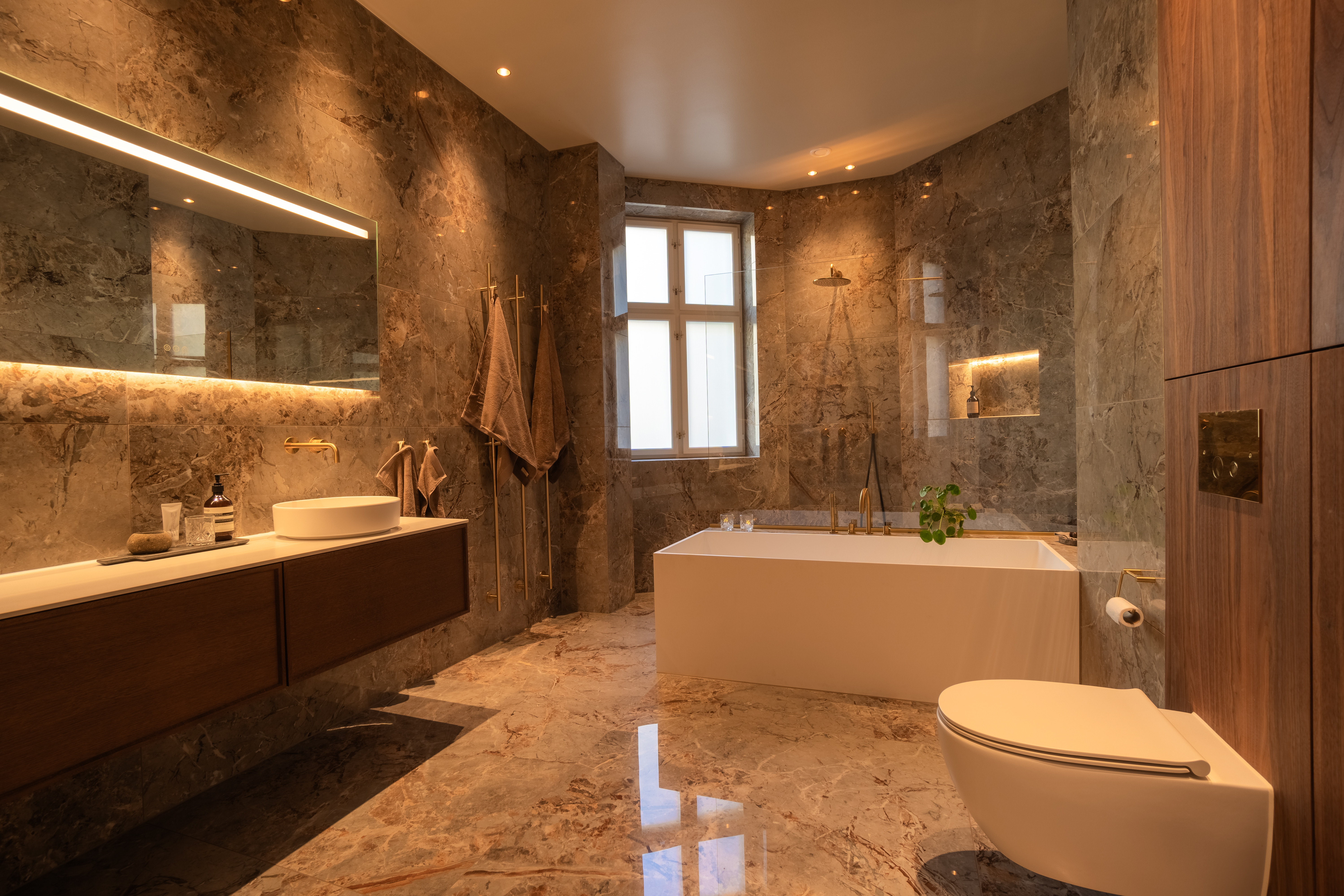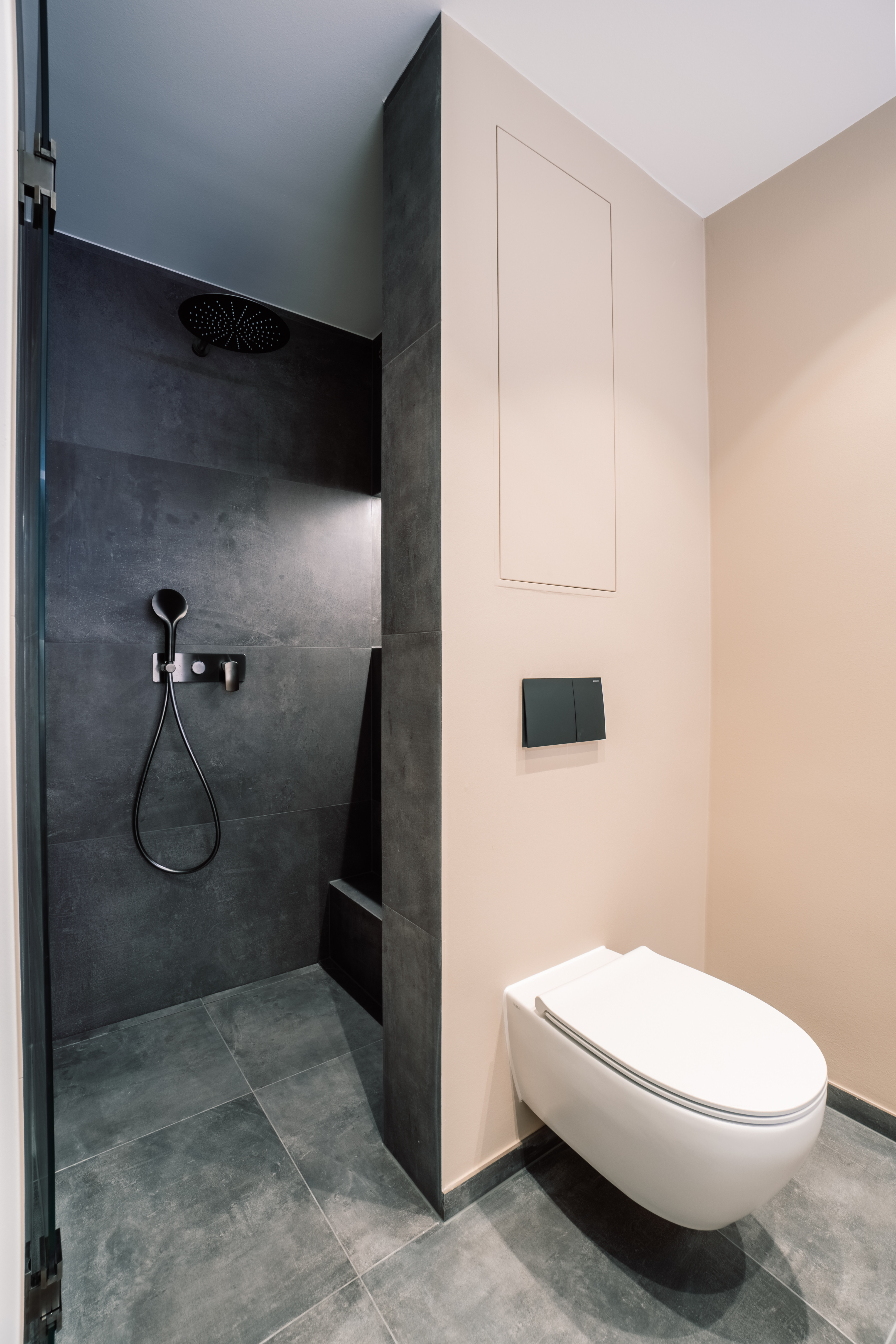Først og fremmest er badeværelset udført i ekstremt højt kvalitet og med stor kræsen for detaljerne: Alt sidder snorlige og løsningerne med den indbyggede og oplyste shampoo-hylde eller de indmurede sokler er med til at give en følelse af et absolut premium murerarbejde. Jeg vil kraftigt anbefale kunder der ønsker et badeværelse ud over det sædvanlige at tjekke andre af Önders arbejder på de sociale medier, da det giver et rigtig godt billede af hvor flot et arbejde han leverer. Vi kunne ihvertfald ikke ønske os mere.