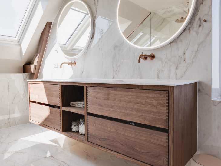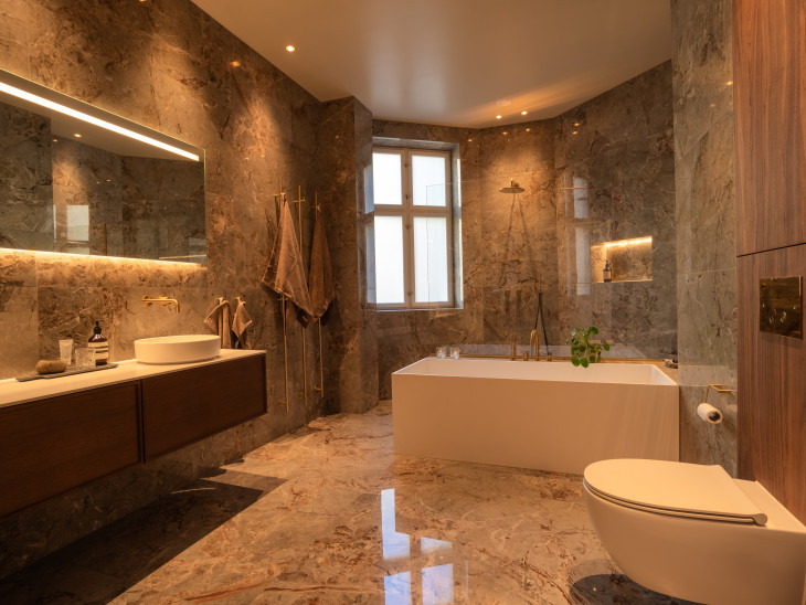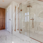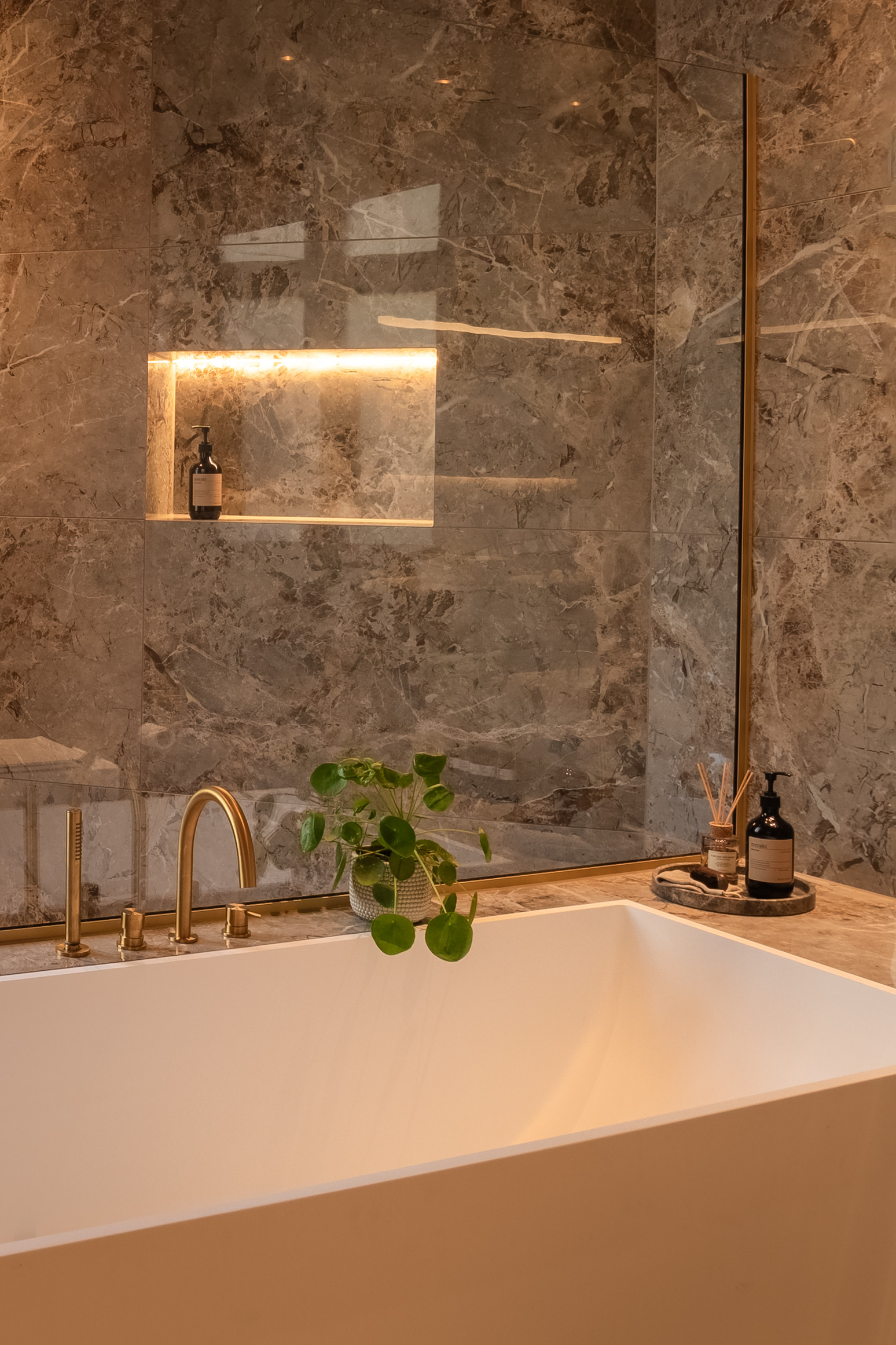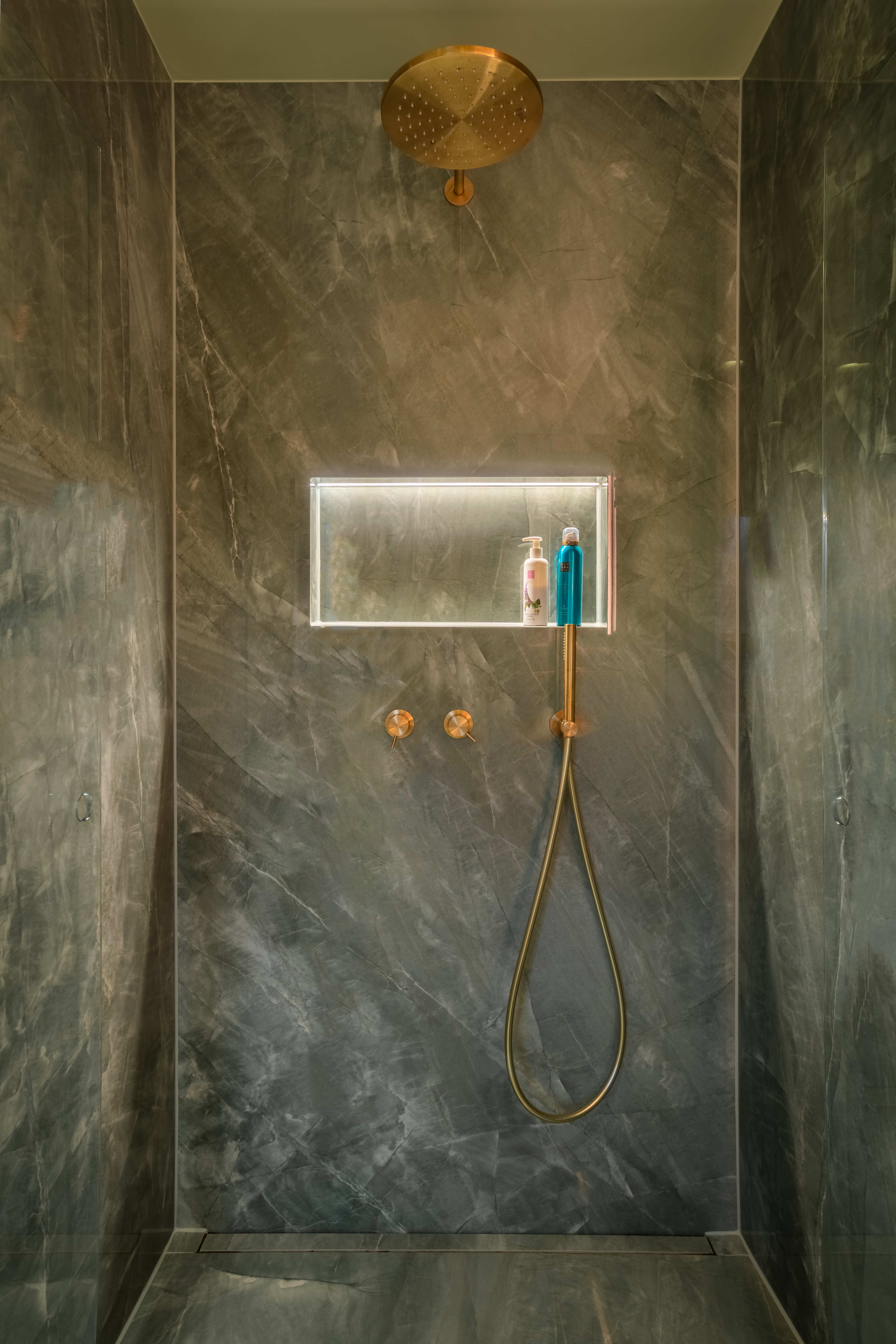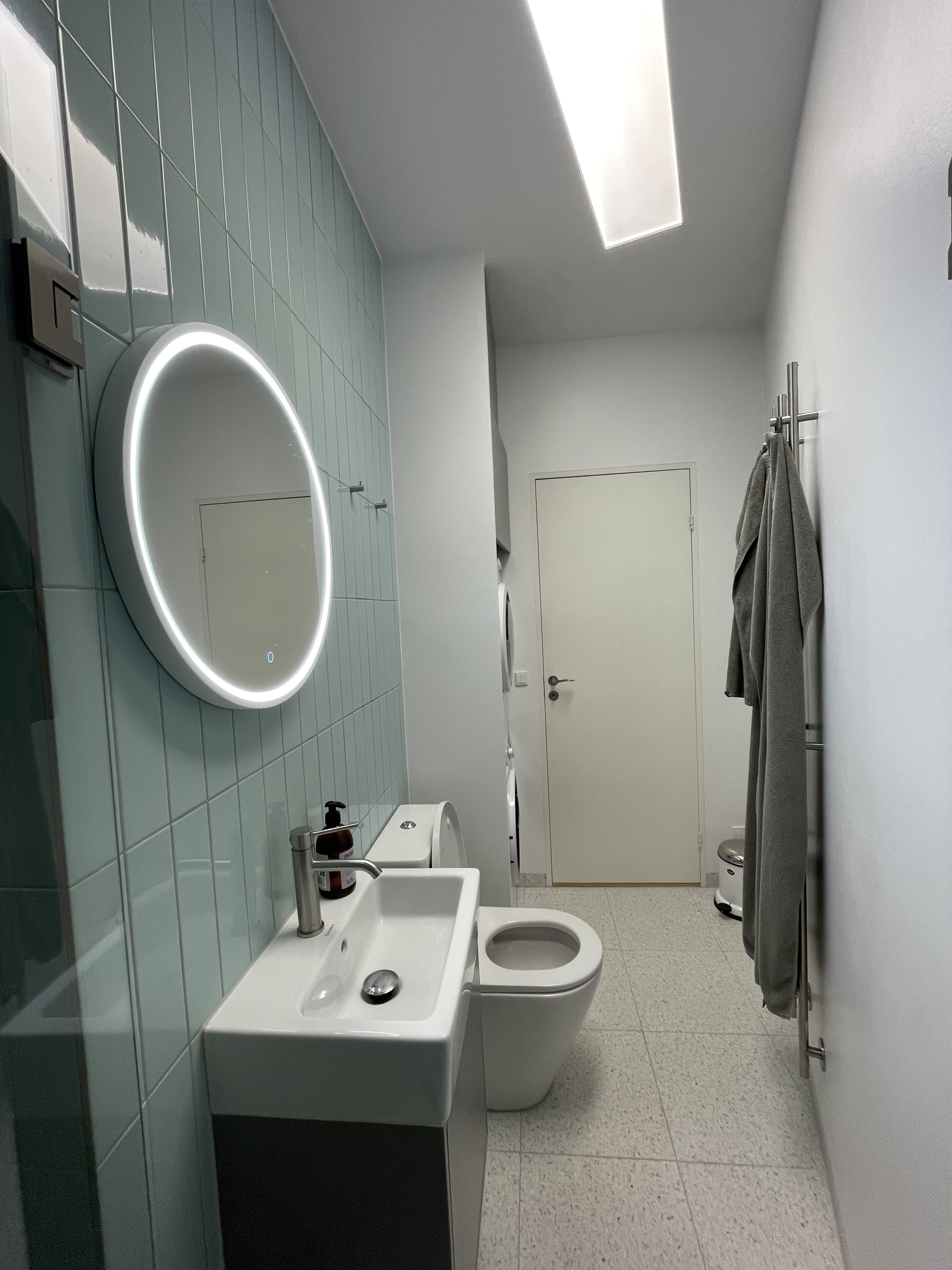 Først og fremmest er badeværelset udført i ekstremt højt kvalitet og med stor kræsen for detaljerne: Alt sidder snorlige og løsningerne med den indbyggede og oplyste shampoo-hylde eller de indmurede sokler er med til at give en følelse af et absolut premium murerarbejde. Jeg vil kraftigt anbefale kunder der ønsker et badeværelse ud over det sædvanlige at tjekke andre af Önders arbejder på de sociale medier, da det giver et rigtig godt billede af hvor flot et arbejde han leverer. Vi kunne ihvertfald ikke ønske os mere.