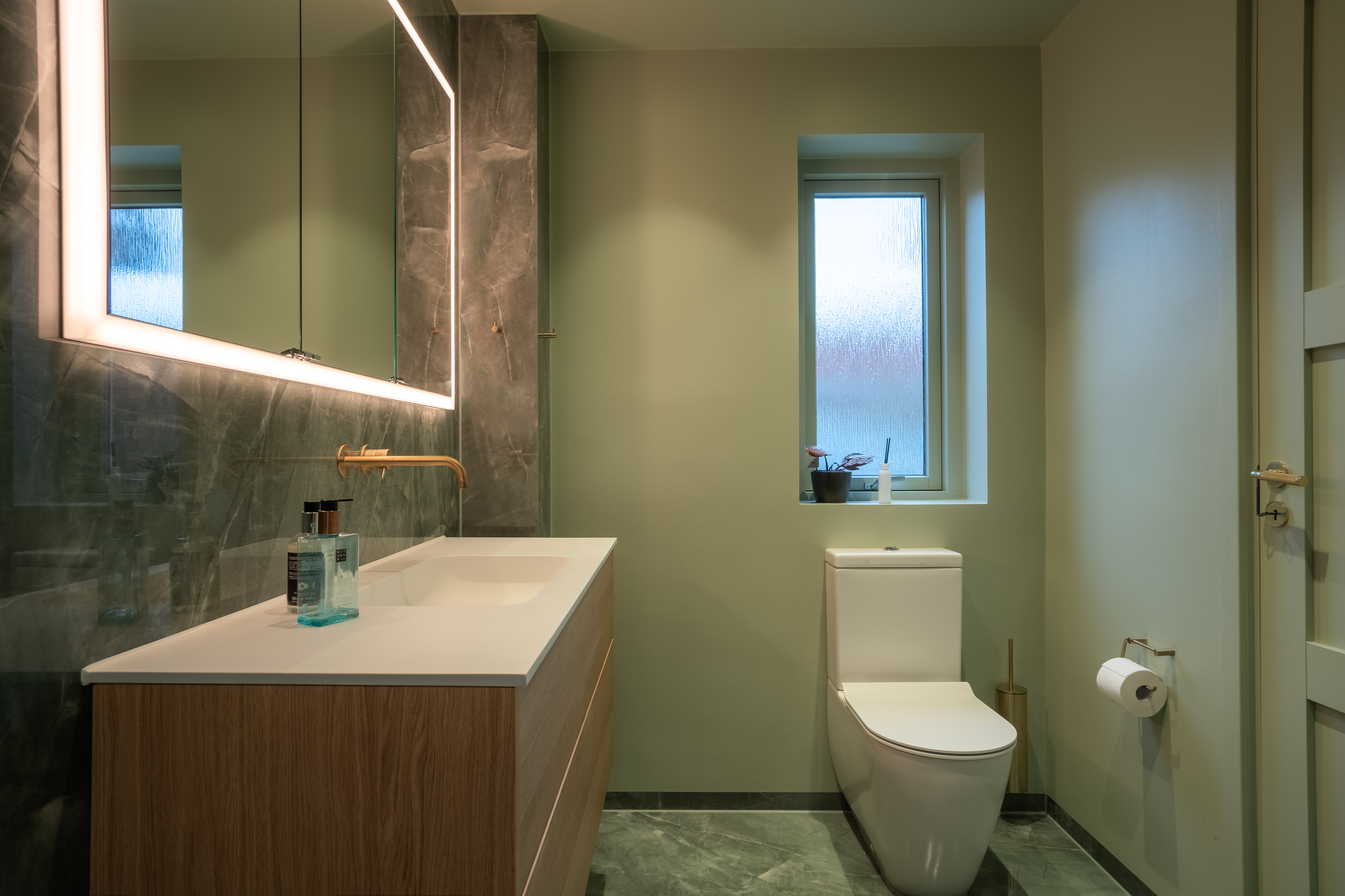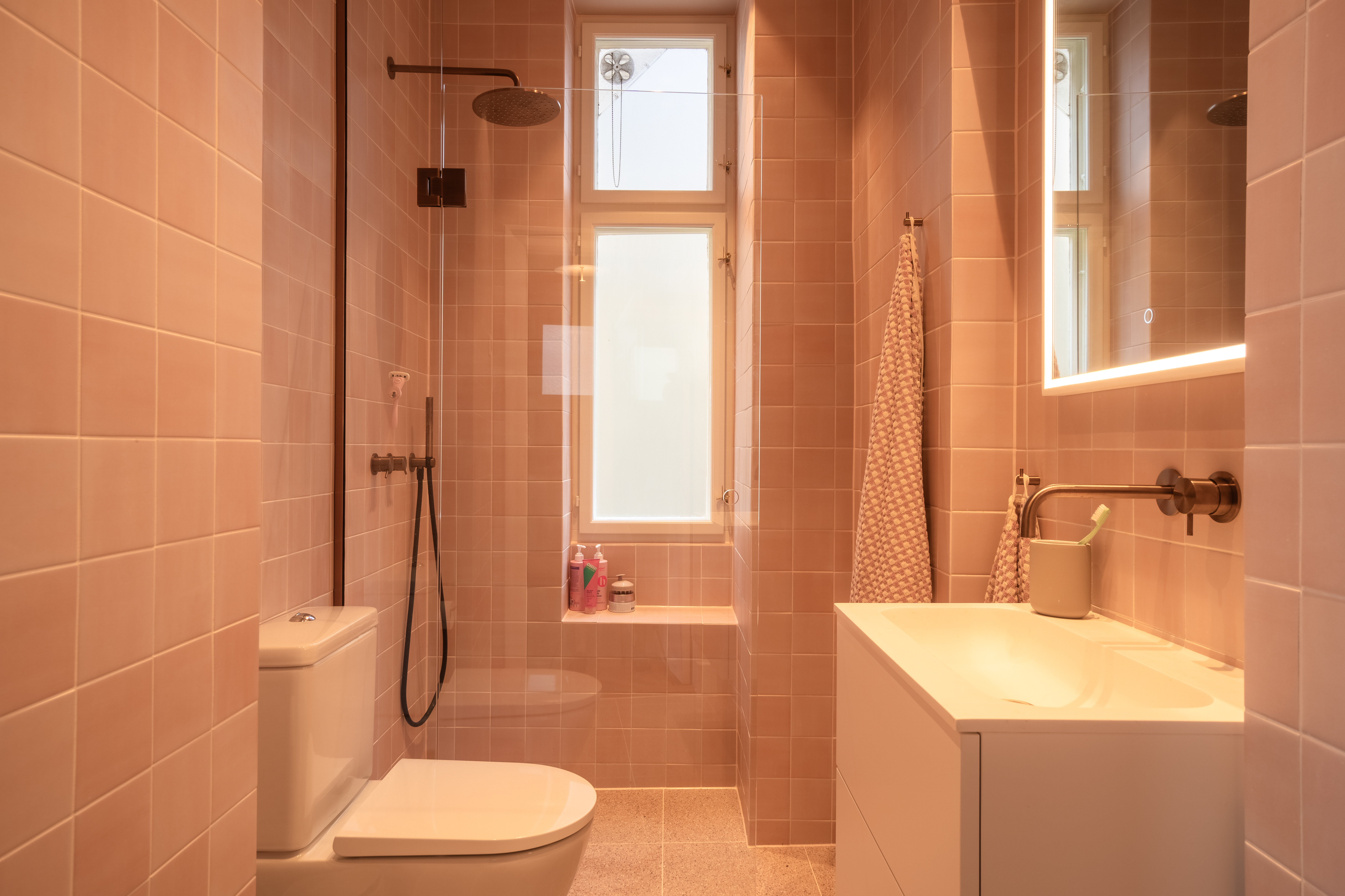 Derudover har vi også været meget tilfreds med alt det der ligger før, under og efter sådan et renovationsprojekt: Indledningsvist var Önder rigtig god til at 'udfordre' vores eget udspil til hvordan badeværelse skulle indrettes, og hans forslag til at rykke rundt på elementerne samt i særdeleshed det store nye ovenlysvindue har helt tydeligt skabt et meget bedre rum.