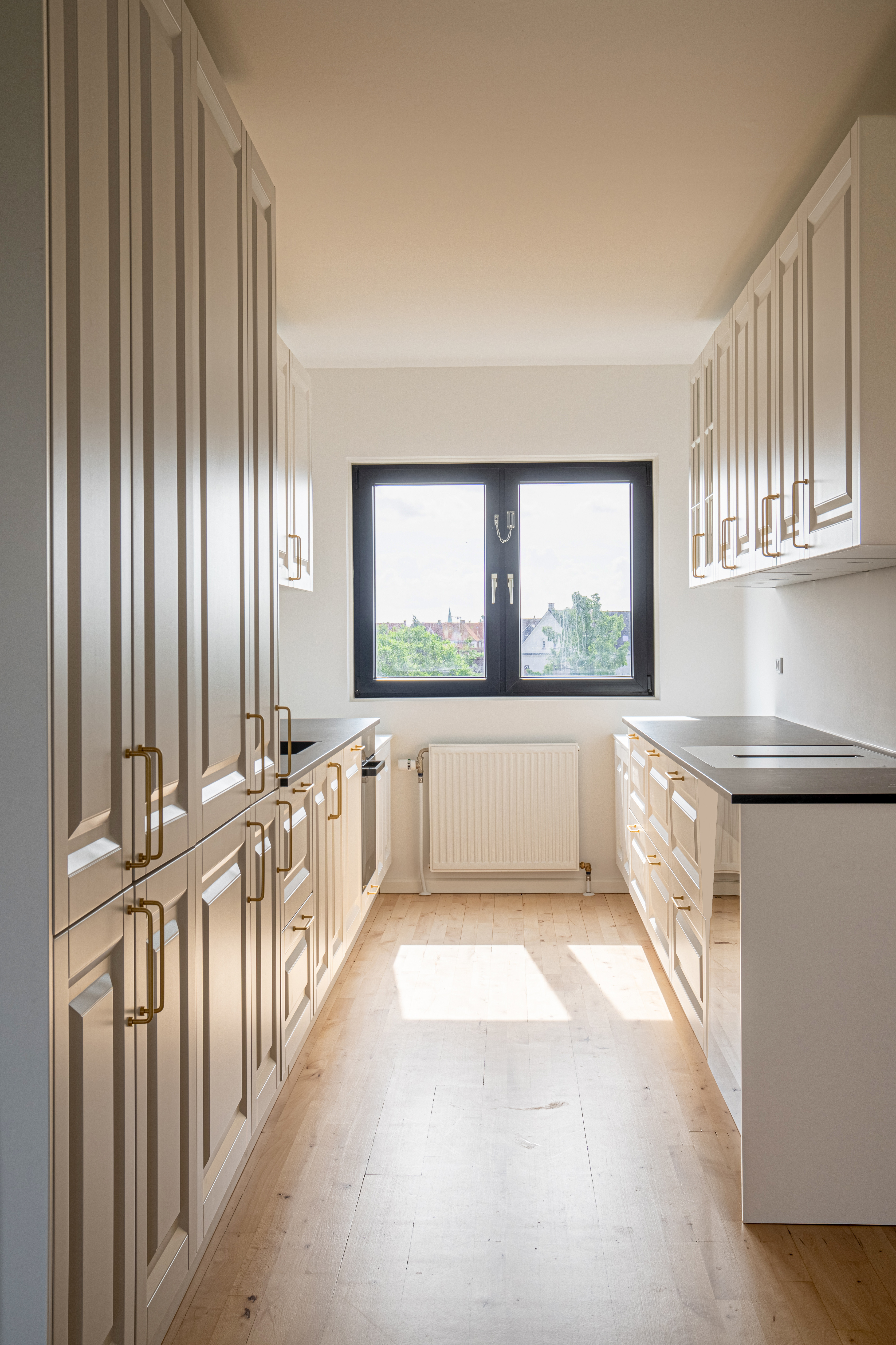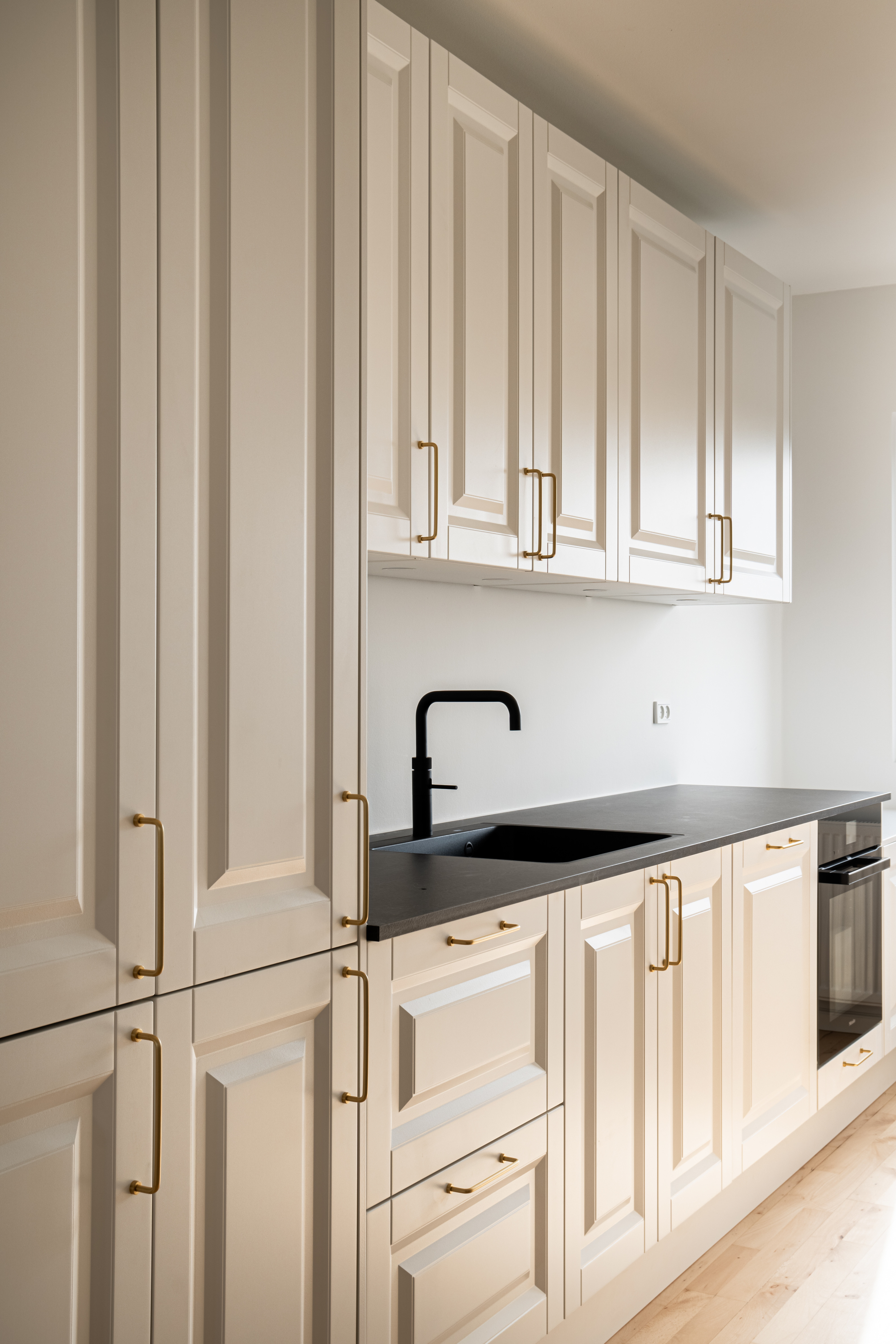 Vi kunne flytte ind med ting i det nye køkken til den aftalte tid.