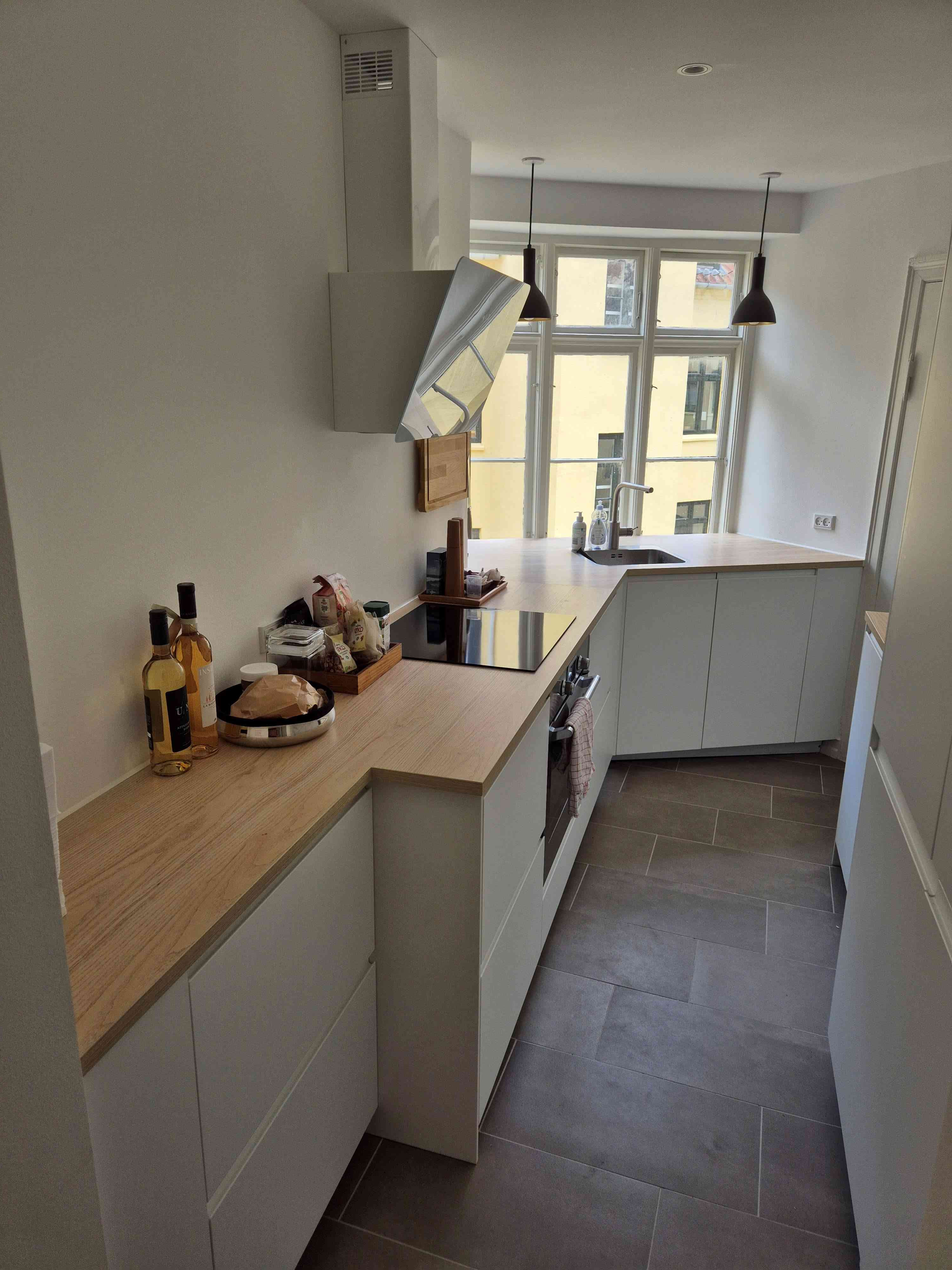 Jeg har haft Kbh Bygge Design til at renovere mit køkken samt gang og toilet. Opgaven omfattede nyt gulv (fliser) i køkken og gang, sænket loft, pudsning af alle vægge, diverse el og vvs opgaver, samt opsætning af et nyt Ikea-køkken.