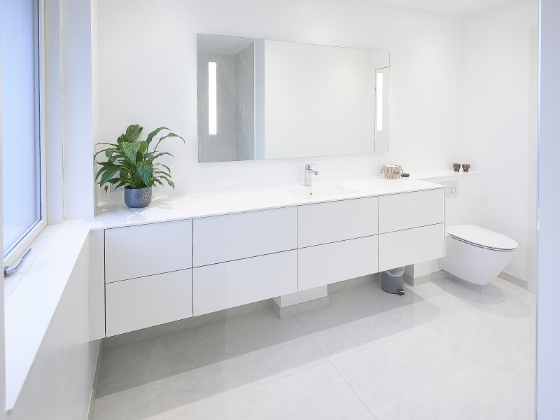 Fra først gennemgang med John til færdig projekt, har der været en utrolig god dialog. Vi vidste godt at de var dygtige til badeværelser, vi har fået lavet 2 stk. med storformat fliser 120*260 som virkelig er blevet flotte. Inkl. deres egenproduceret snedkermøbler.