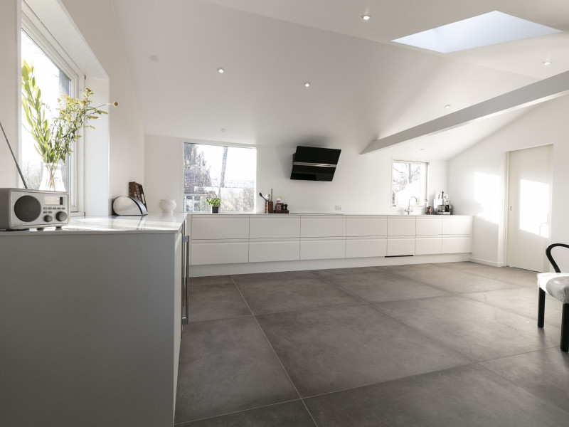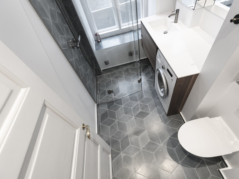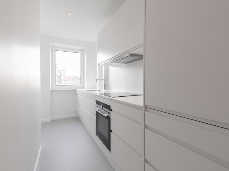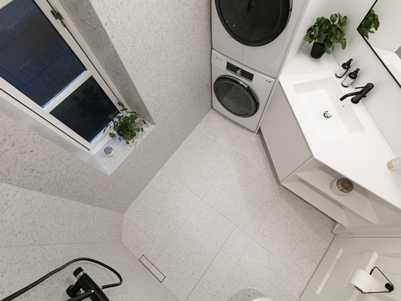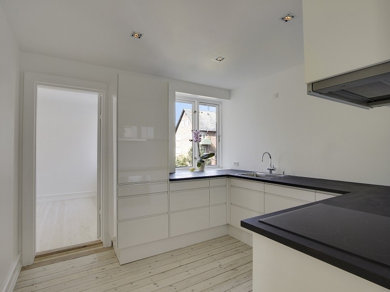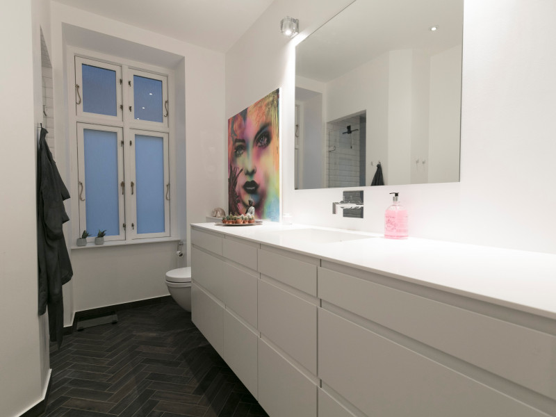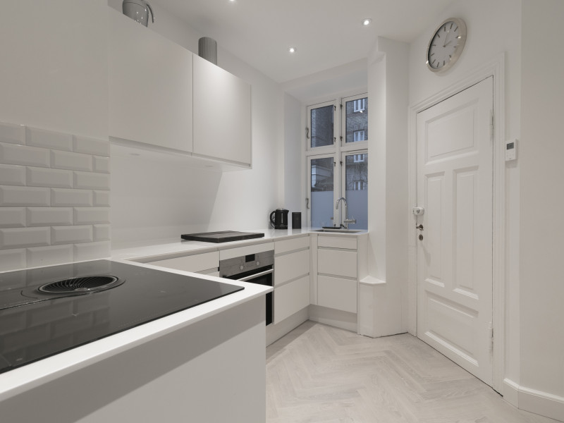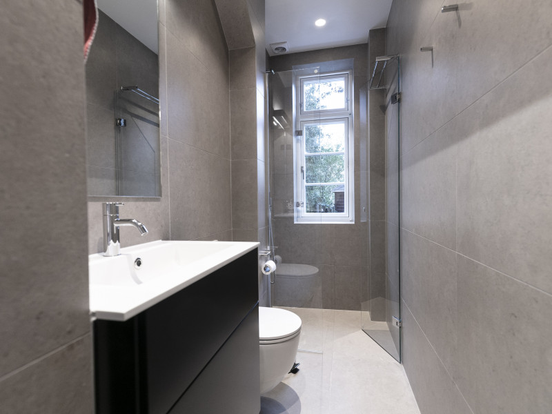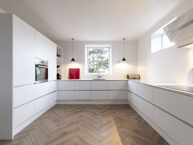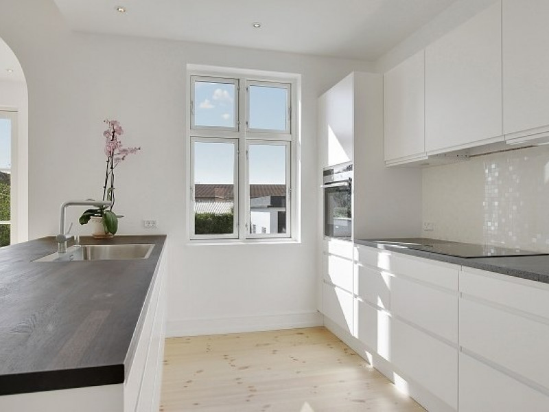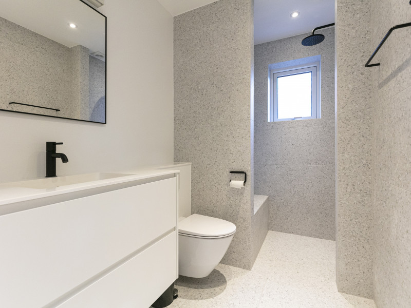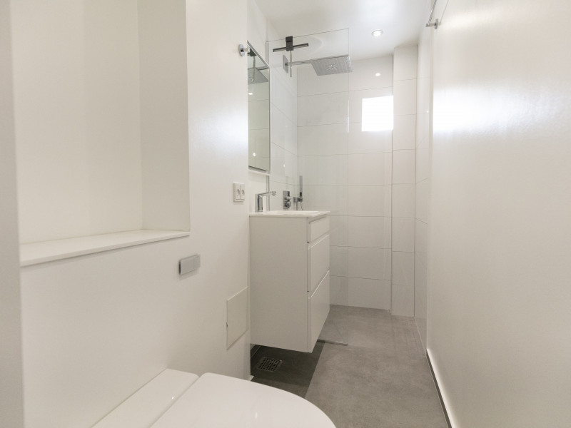 Projektet omfattede en gennemgribende renovering, herunder nyt badeværelse og køkken, installation af gulvvarme samt lægning af smukt sildebensgulv. Kvaliteten af håndværket er i top, og vi har fået en bolig, der både er æstetisk flot og funktionelt optimeret.