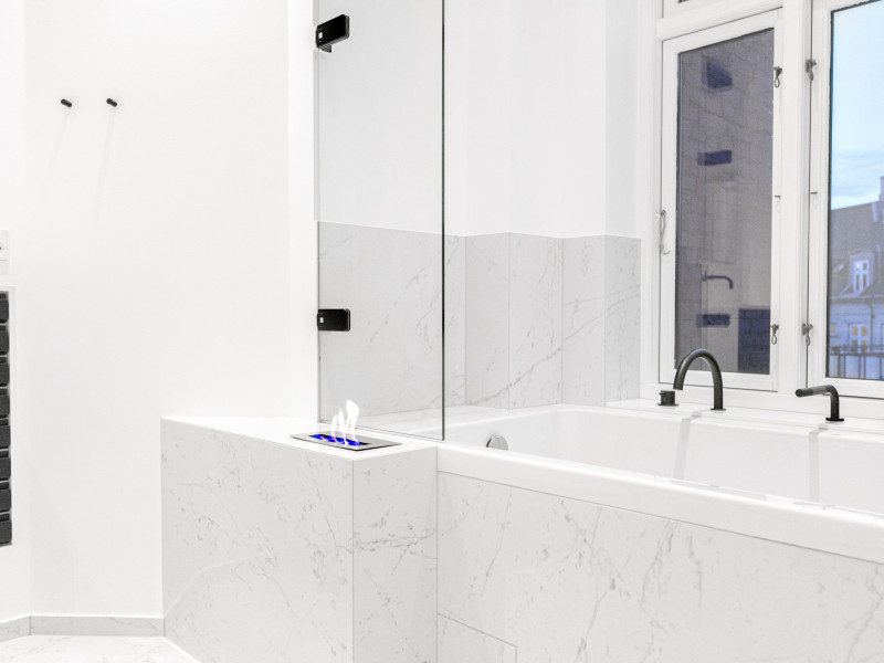 Mange tak for den flotte anmeldelse. Den er utrolig vigtig for os, den er meget værdsat. Jeg ved at der var flere forskellige firmaer indover jeres renoverings projekt til at starte med. Vi er stolte af at I valgte at gå med La carta. Jeg synes at vi fra dag 1 af, har haft en rigtig fin dialog, både fra jeres og vores side. Vi har fra start af ønsket at lave det bedste resultat for jer, jeg synes valget af materialerne er rigtig godt. Valget omkring fliserne er utrolig smukke. Det kræver altid lidt at lave fliser i 120x260, specielt når det er på 3. sal ;)