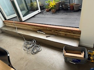 Vi vil naturligvis meget gerne hjælpe jer med træterrassen og trætrappen nedenunder og hvis der ellers kommer opgaver som I har behov for hjælp til.