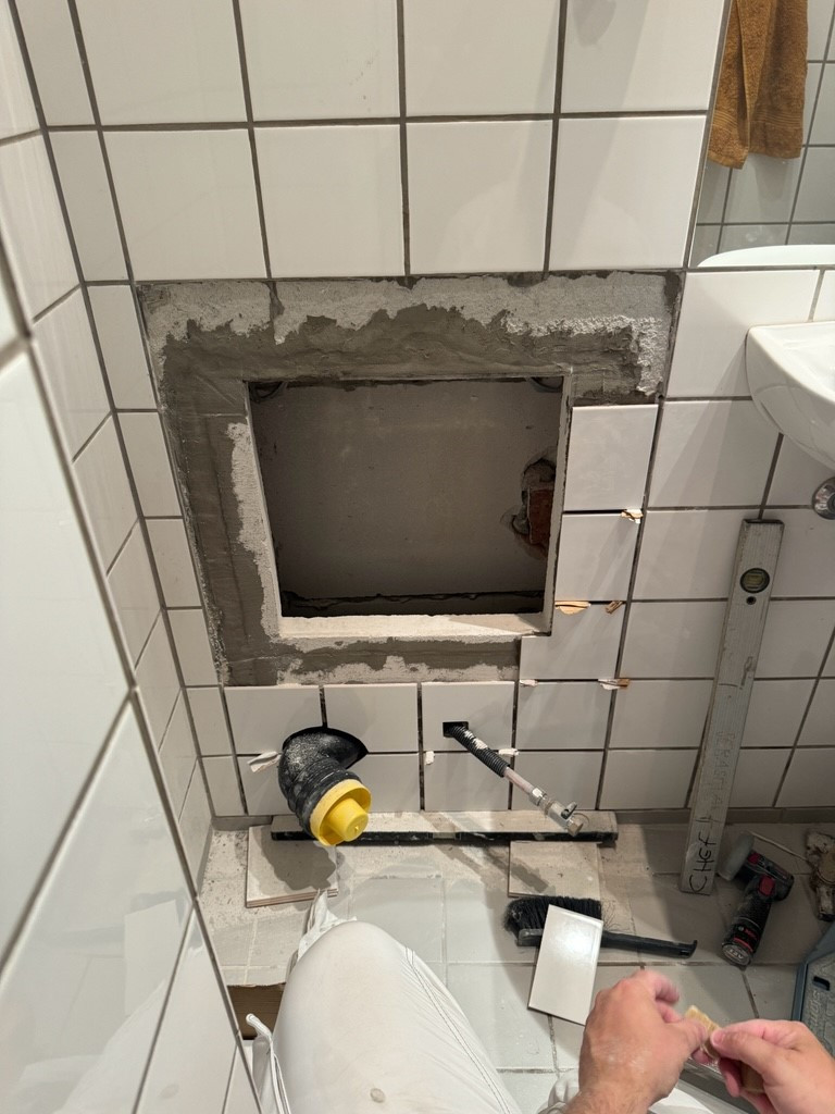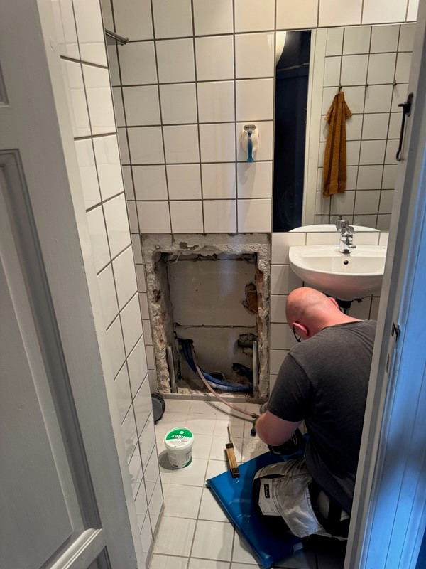 Vi har haft problemer med kulde efter vi fik nye køkken med bordemfang og aftræk gennem hul i murværk. Da køkkenet dækkede for hullet, skulle der kreative løsninger til, at komme ind og identificere problemet. Det blev løst ved at save et hul i hjørneskabet - alle rør blev samlet korrekt - limet - isoleret og sat fast - og hullet i skabet blev lappet på fineste vis. TAK for at løse et langvarigt problem som det oprindelige køkkenfirma ikke tog seriøst.