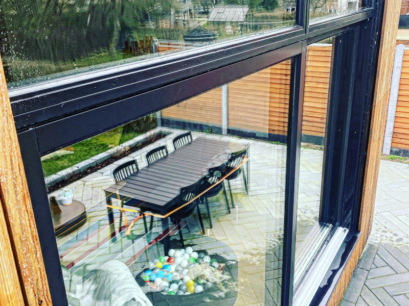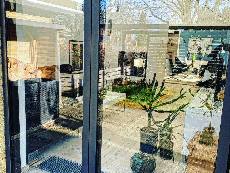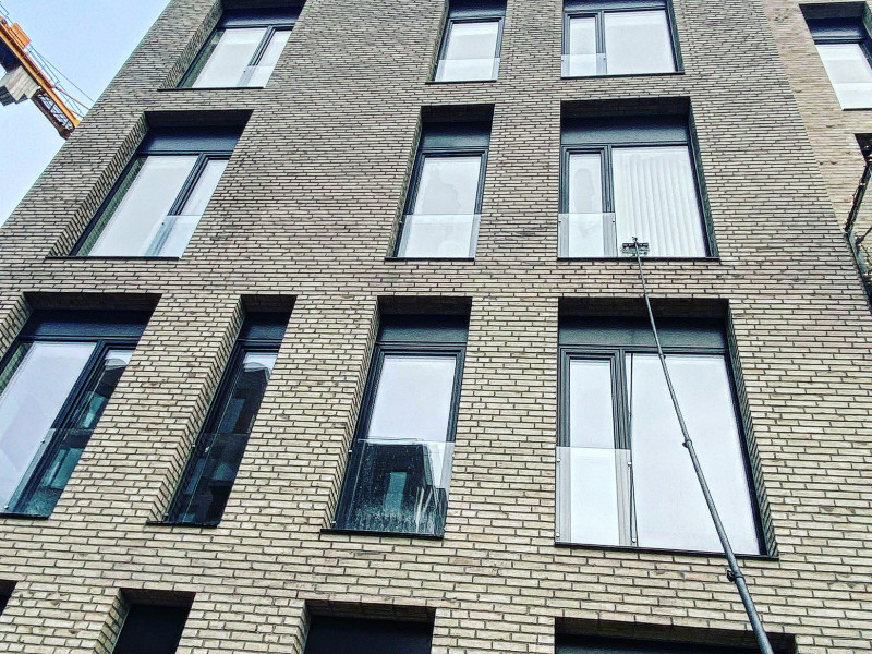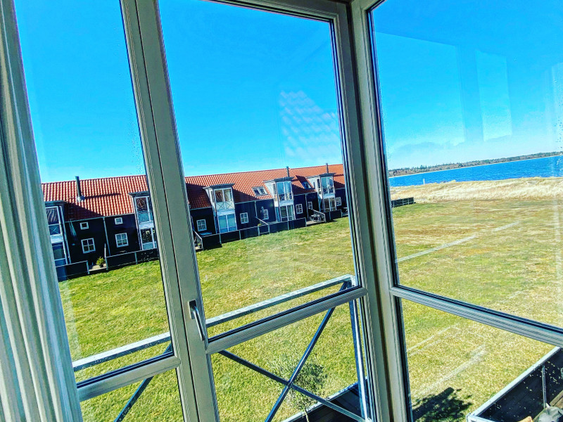 Jeg har fået vasket vinduer, og Mikkel er sød at forcere en vanskelig tilgang til mine vinduer, super taknemmelig