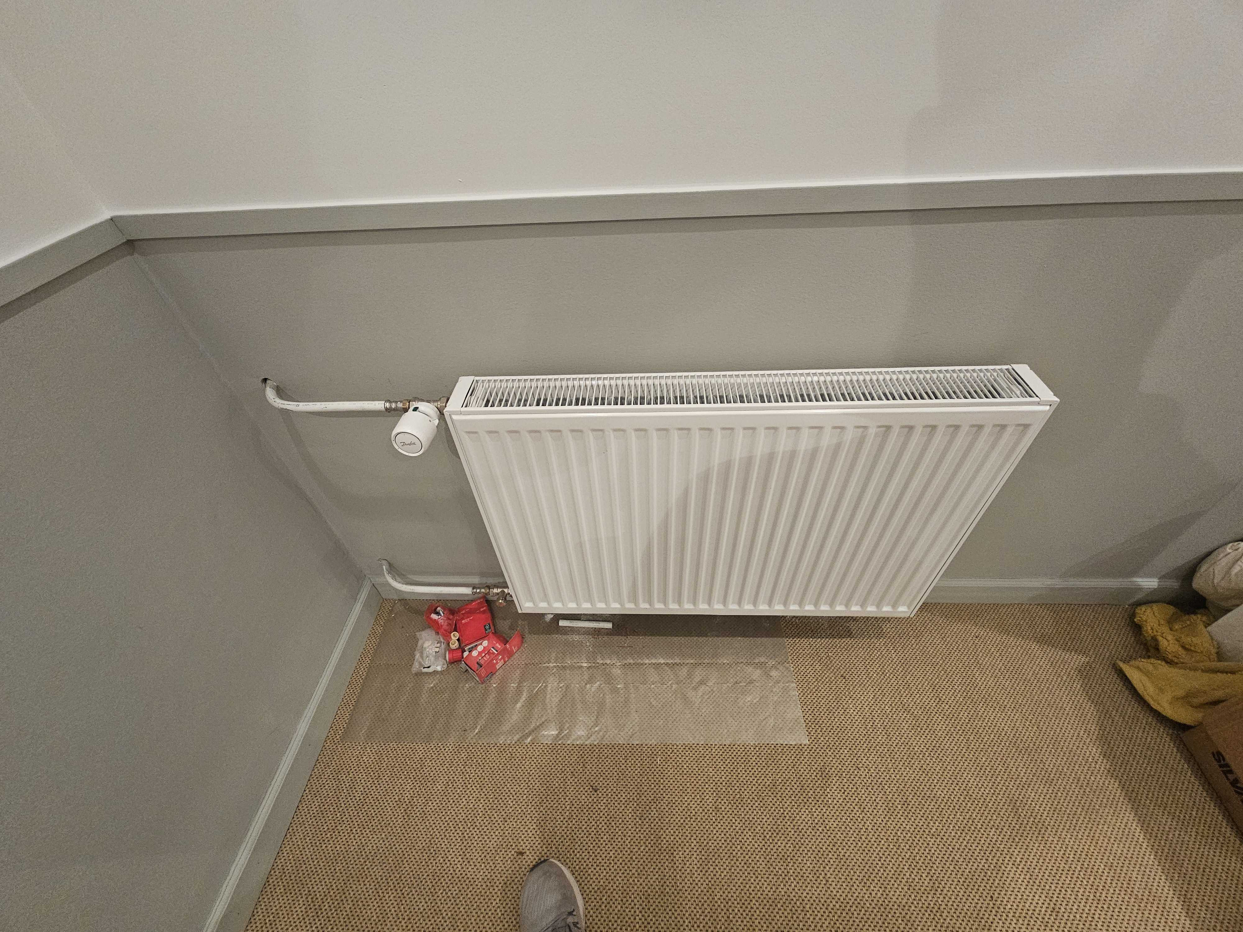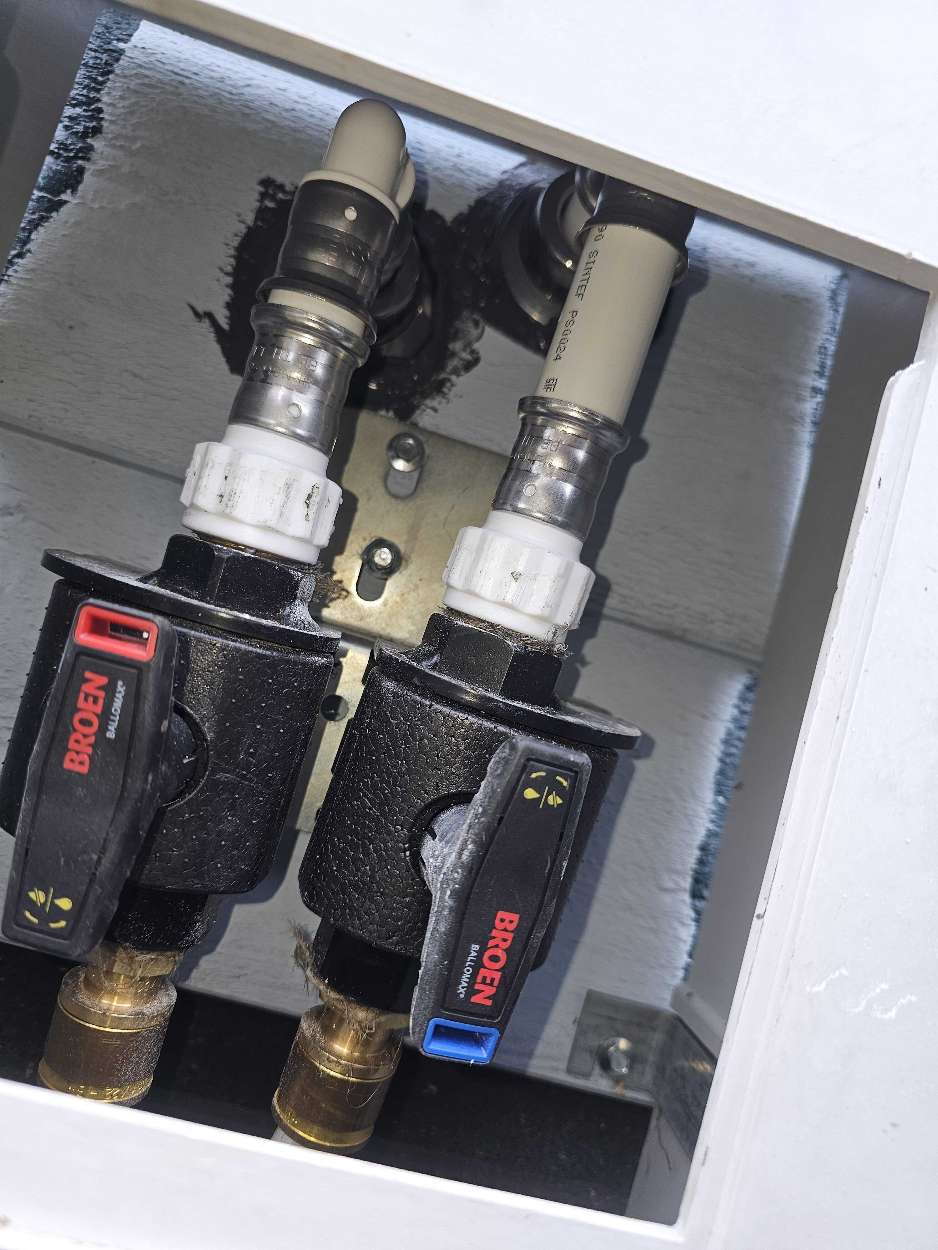 Udskiftning af blandingsbatteri med ny stang og brusehoved og udskiftning af alle radiator termostater i lejligheden