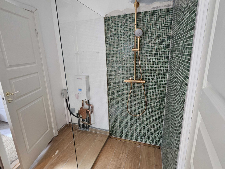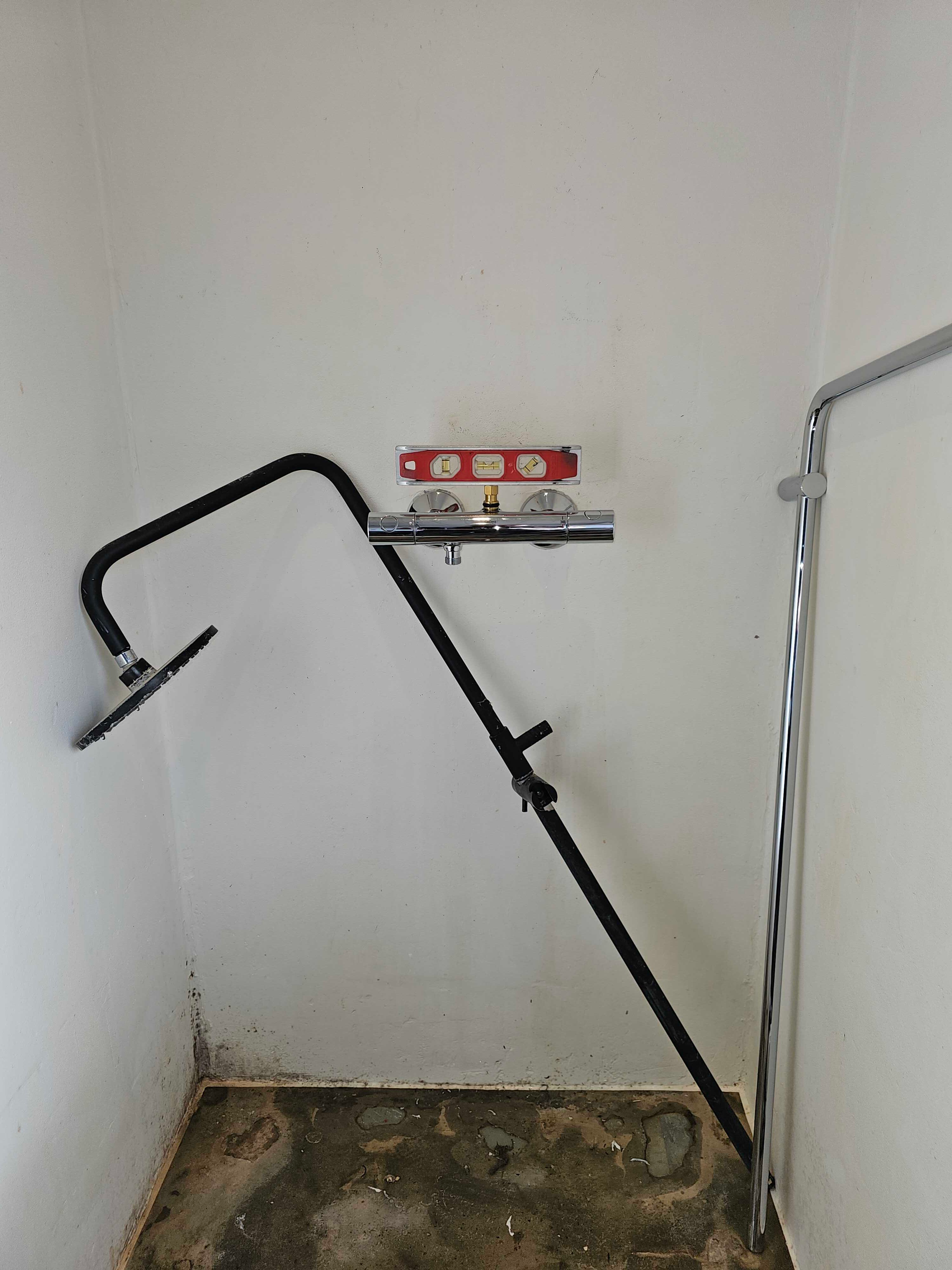 Nu er vandvarmeren fixet og vi fik samtidig sat nyt brusesæt op + div småting.